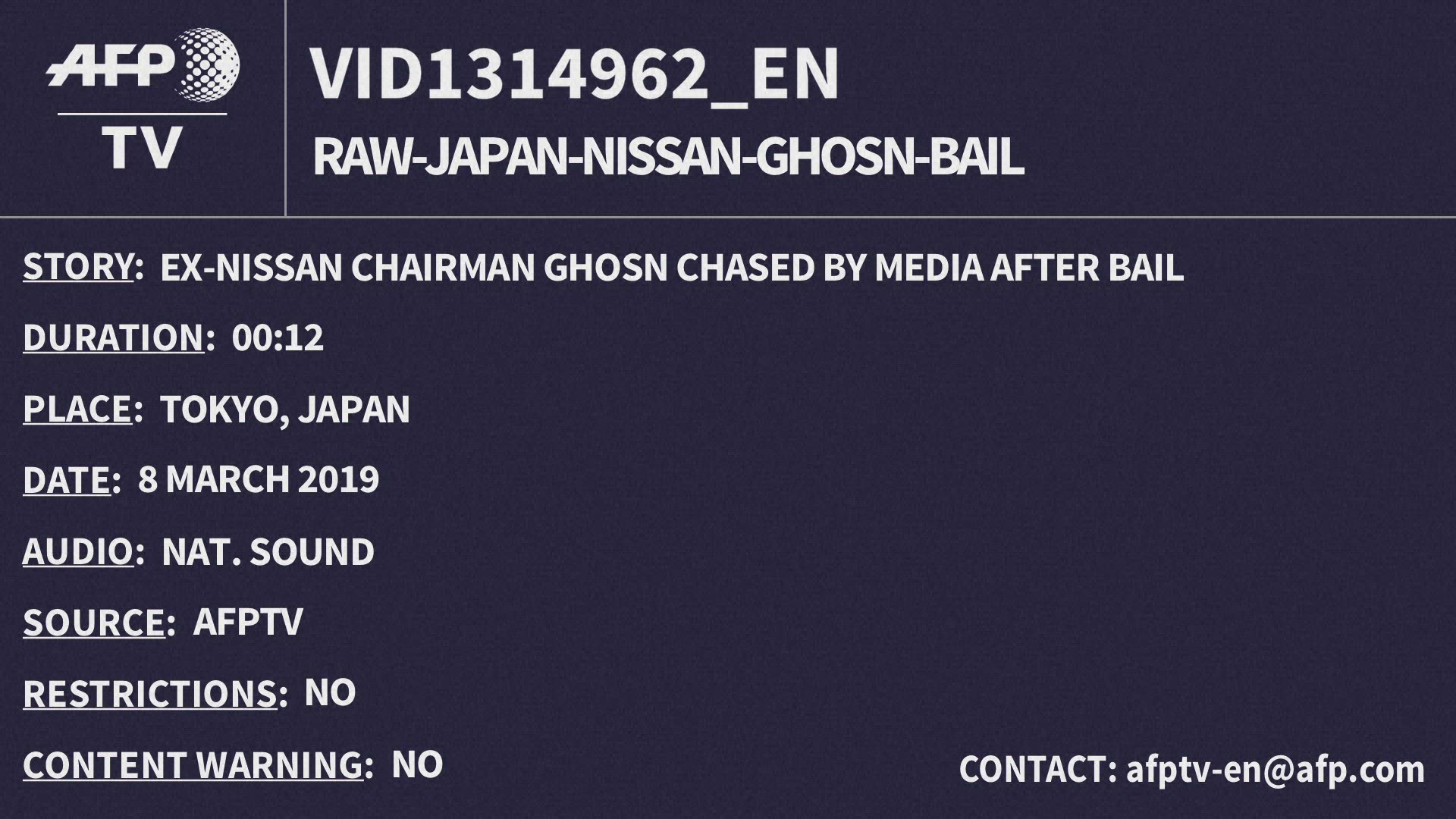 Ex-Nissan chairman Ghosn chased by media after bail Ex-Nissan chairman Carlos Ghosn is chased by media in Tokyo days after he was released on bail. IMAGES