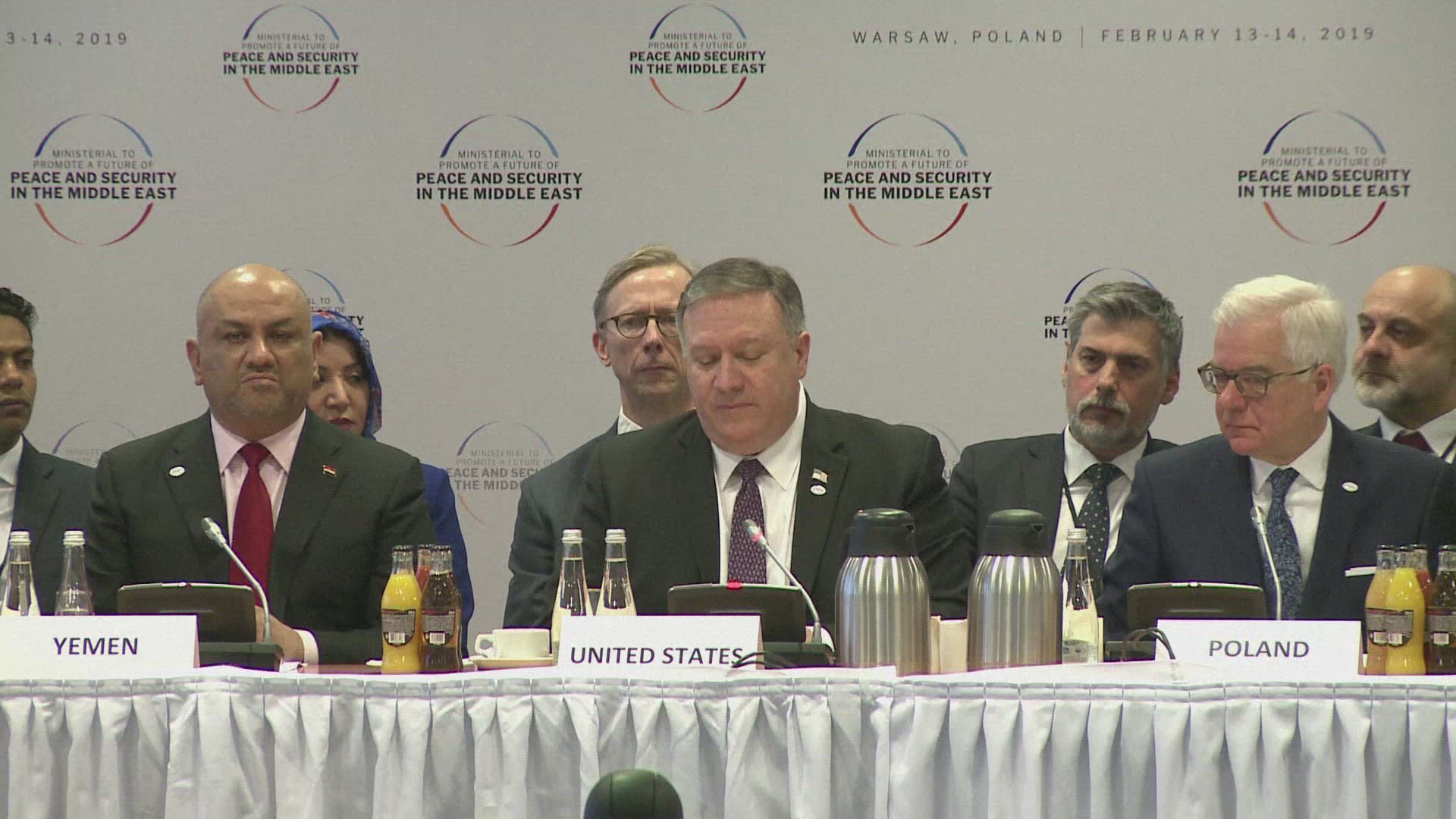 Opening of Warsaw talks about security in the Middle East The "Ministerial to Promote a Future of Peace and Security in the Middle East" conference opens in Warsaw, Poland. US Vice President Mike Pence and US Secretary of State Mike Pompeo are both attending the conference co-hosted with Poland, which is eager for strong ties with Washington in the face of the threat of Russia. IMAGES of the opening of the conferenceCOMPLETES VID1303963_ENREFILING TO ADD SOUNDBITES IN DOPESHEET