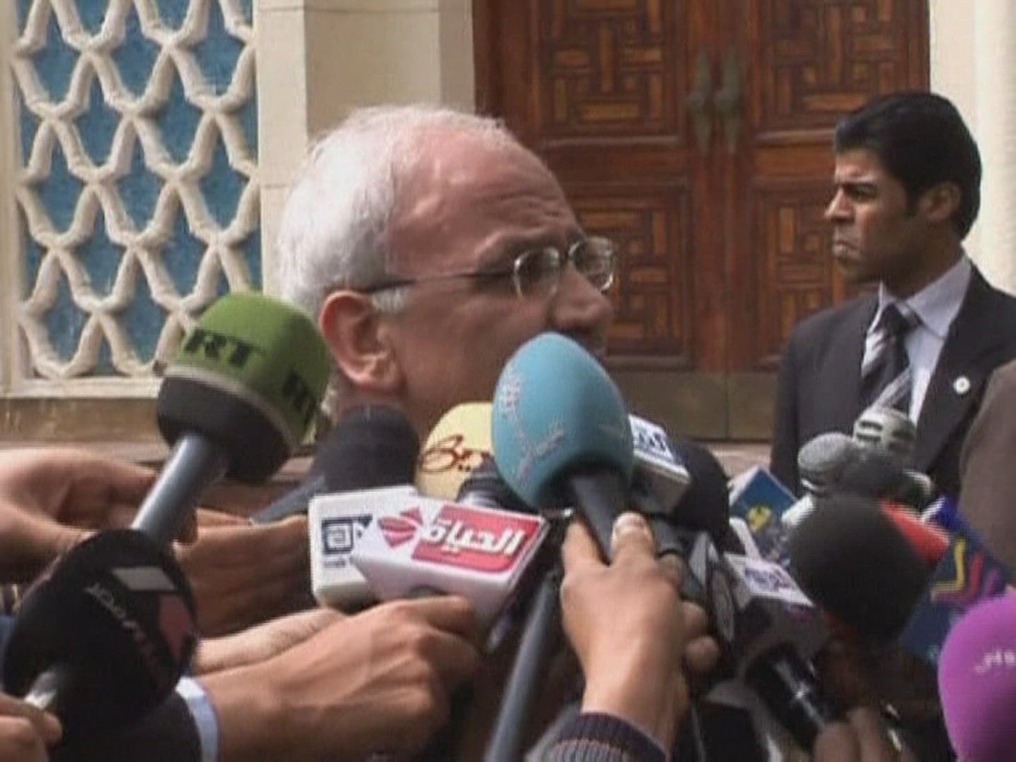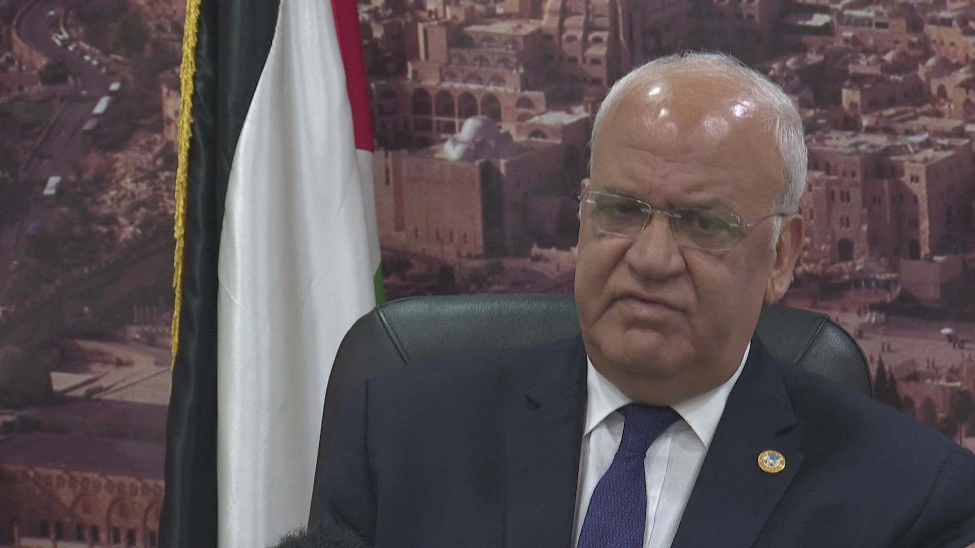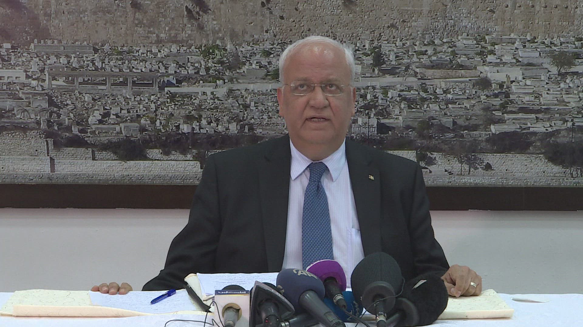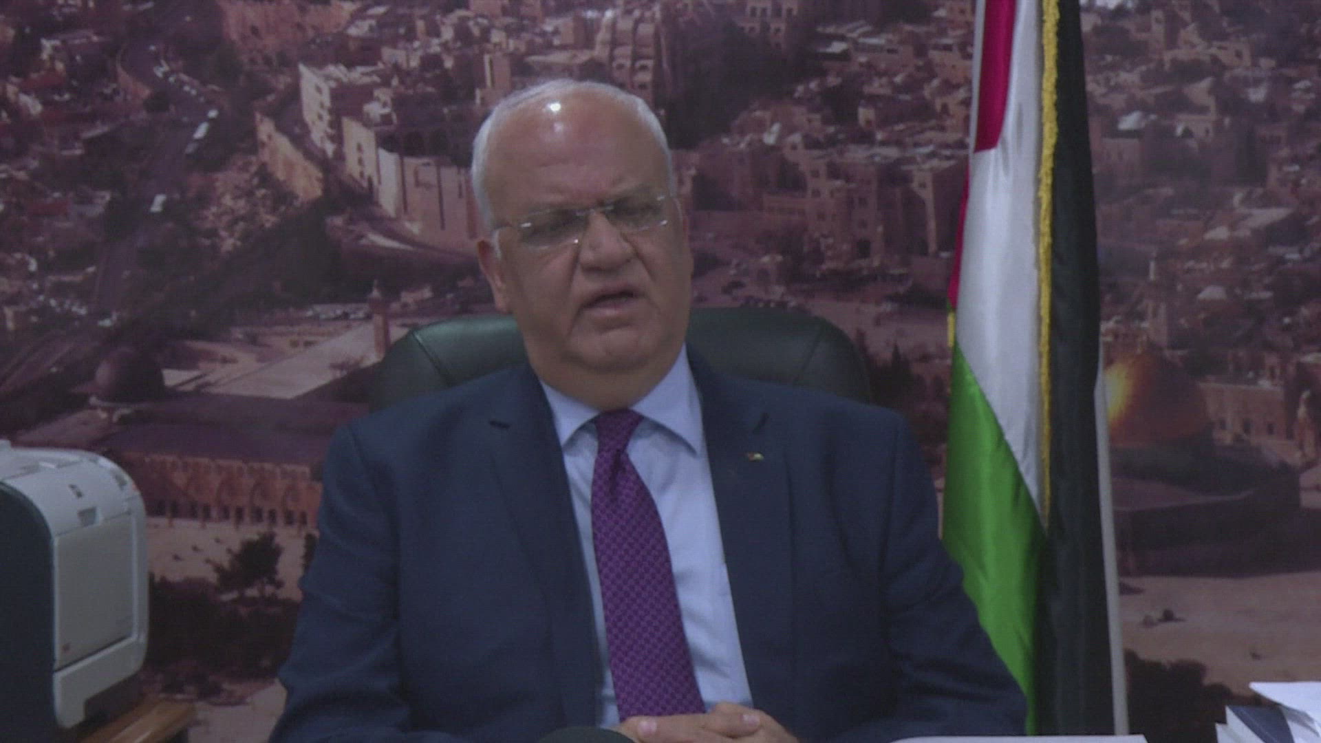 Palestinian official Saeb Erekat comments on the Israeli elections Senior Palestinian official Saeb Erekat gives a press conference on the preliminary results of the Israeli elections at his office in Ramallah. IMAGES AND SOUNDBITE