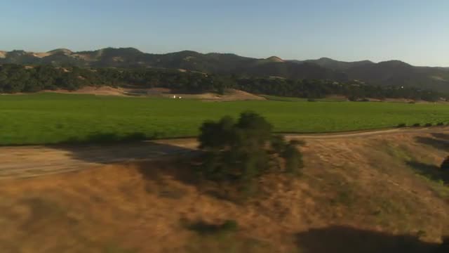 > Dolly move across a row of grape vines in a Santa Barbara County vineyard, California.