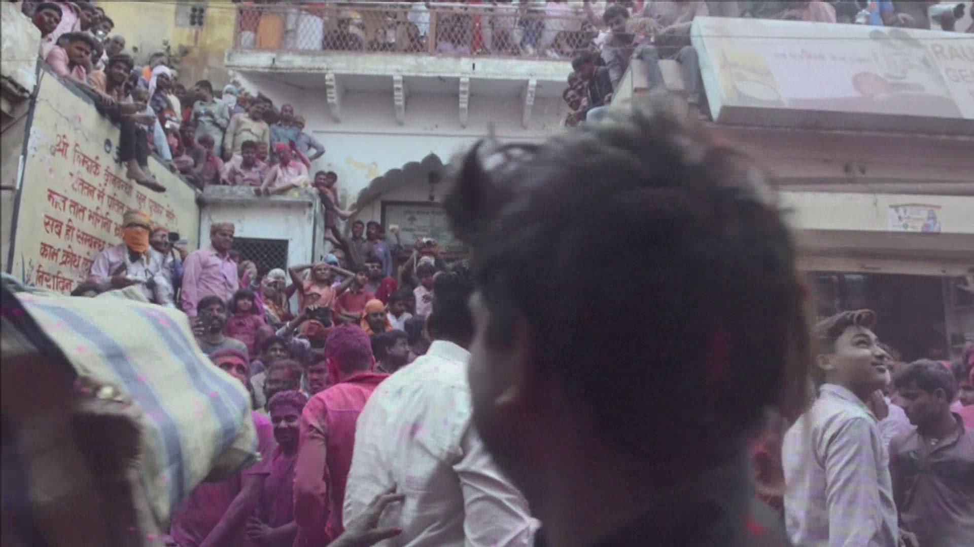 India colours up for Holi festival Indian families cover each other with coloured powder to celebrate Holi, the Hindu spring festival of colours, during a traditional gathering at a temple in New Delhi.