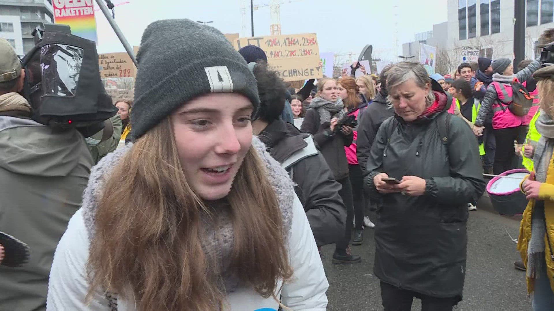 Thousands join global youth demo for climate in Brussels (2) Young people in Brussels march through the streets on a global day of student protests aiming to push world leaders into action on climate change. IMAGES of the protest AND SOUNDBITES of the protesters / COMPLETES VID1318554_EN