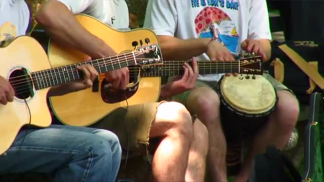 58942 - Two guitarists and a drummer in Central Park, NYC.