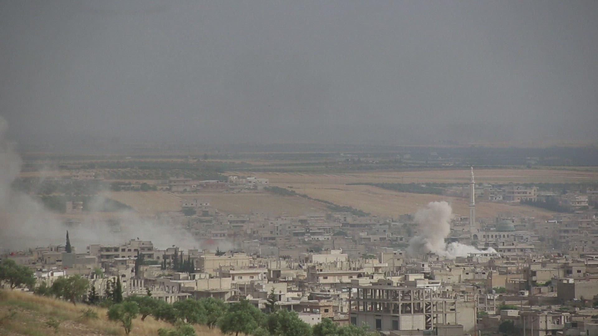 Syria: Smoke billows following reported shelling on Khan Sheikhun Smoke billows following reported bombardment on the town of Khan Sheikhun in the southern countryside of the rebel-held Idlib province. IMAGES