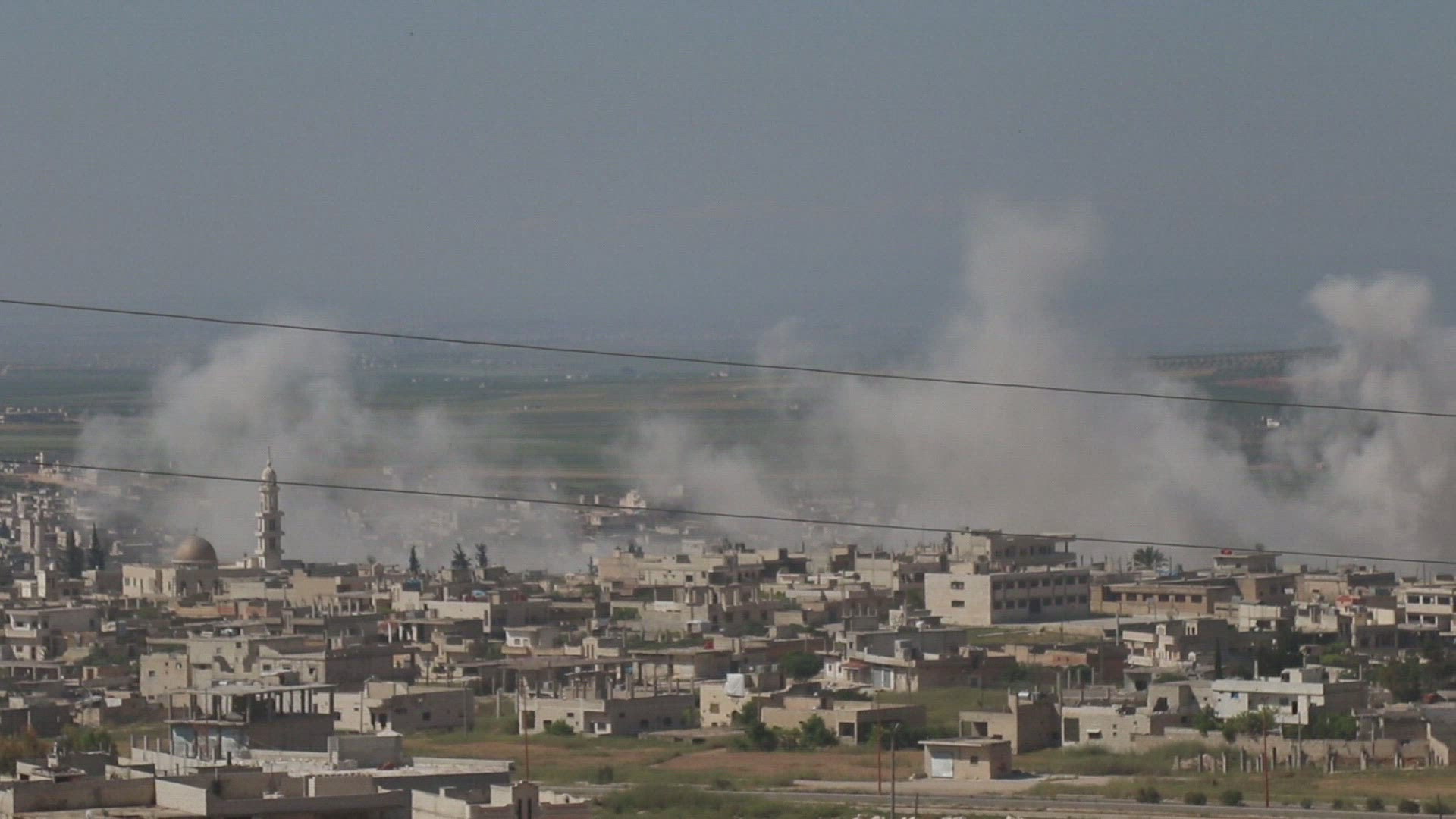 Air strikes hit Khan Sheikhun as Syria army battles jihadists Smoke plumes billow following reported Syrian government forces' bombardment on the town of Khan Sheikhun in the southern countryside of the largely jihadist-controlled region of Idlib. IMAGES