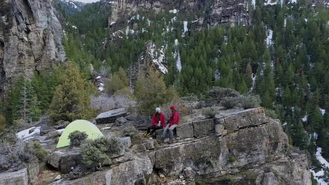 1064780 - Aerial view of campsite on cliff looking down American Fork Canyon