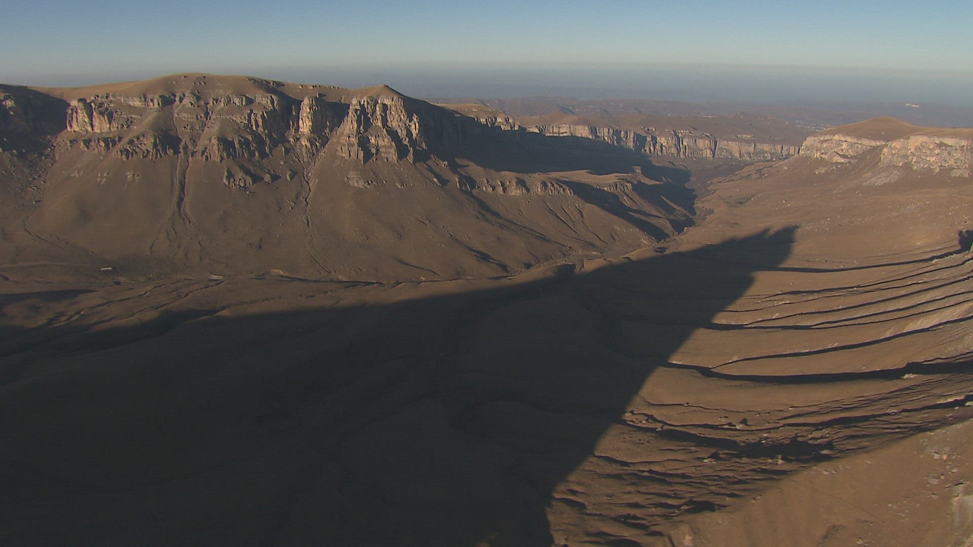 288796 - Aerial Shot of Desert Valley and Red Sun