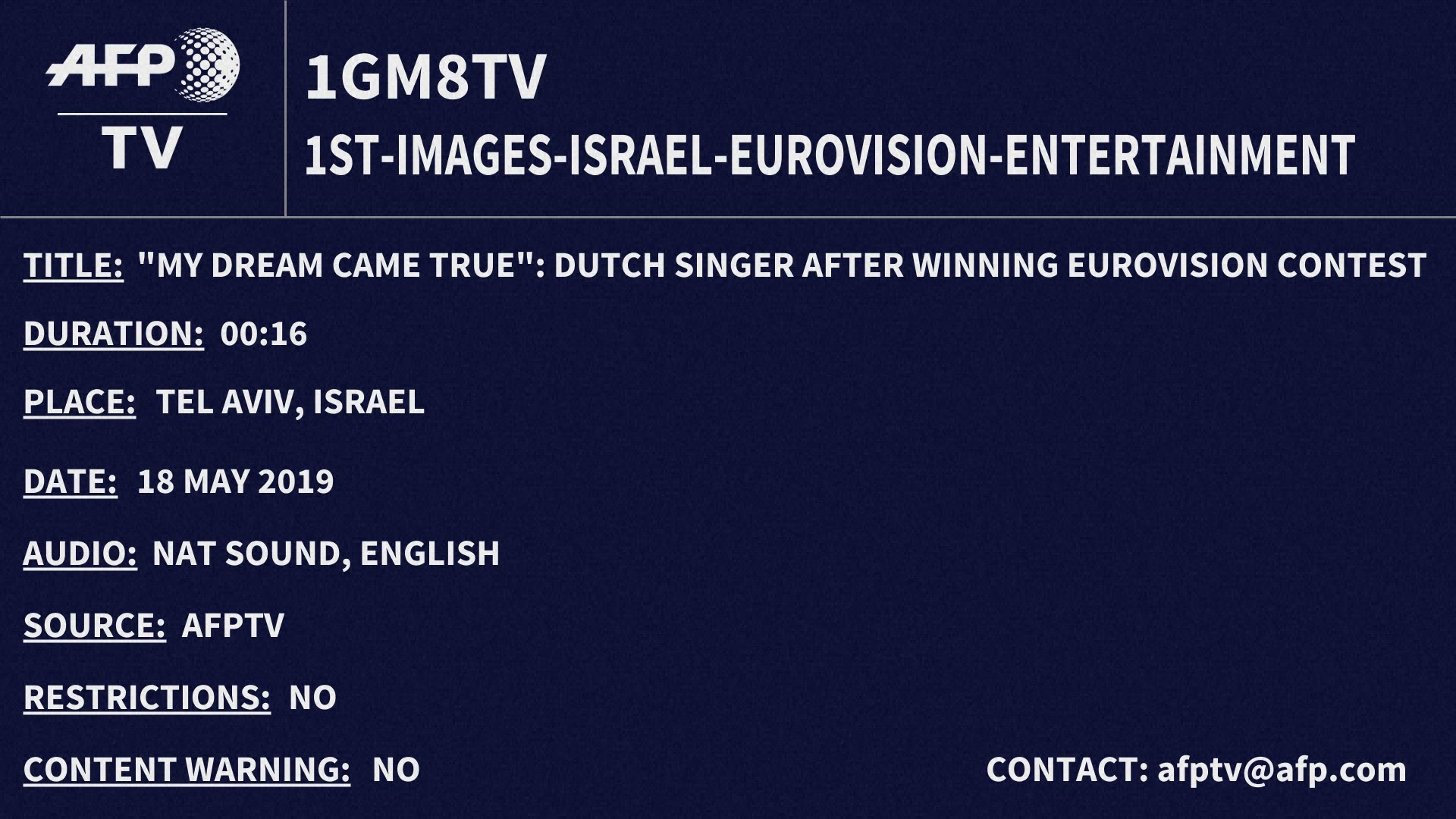 "My dream came true", says Dutch singer after winning Eurovision song contest Duncan Laurence from the Netherlands says his "dream came true" after he won the 2019 Eurovision song contest with the power ballad "Arcade", in Tel Aviv. SOUNDBITE