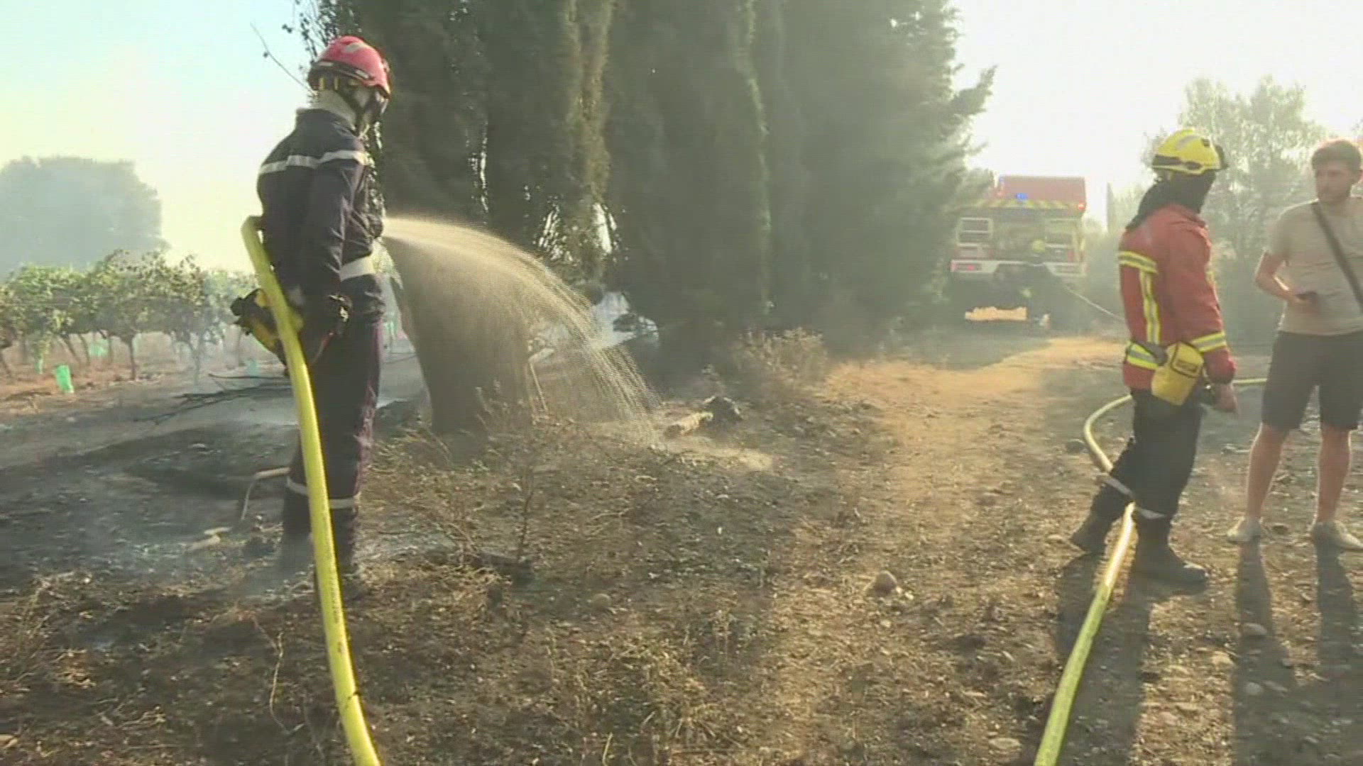 Two suspects arrested after wild fires in southern France Two people suspected of being responsible for the fire at Générac, which destroyed more than 300 hectares of forest on Friday and cost the life of a firefigher plane pilot, have been arrested, Interior Minister Christophe Castaner announces. SONORE