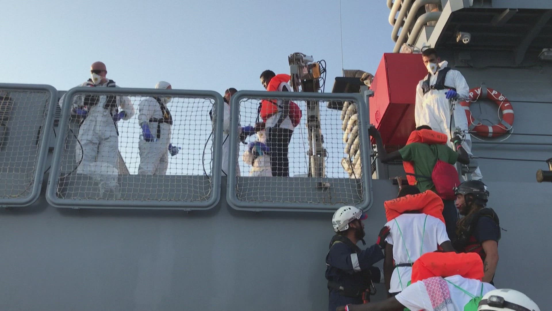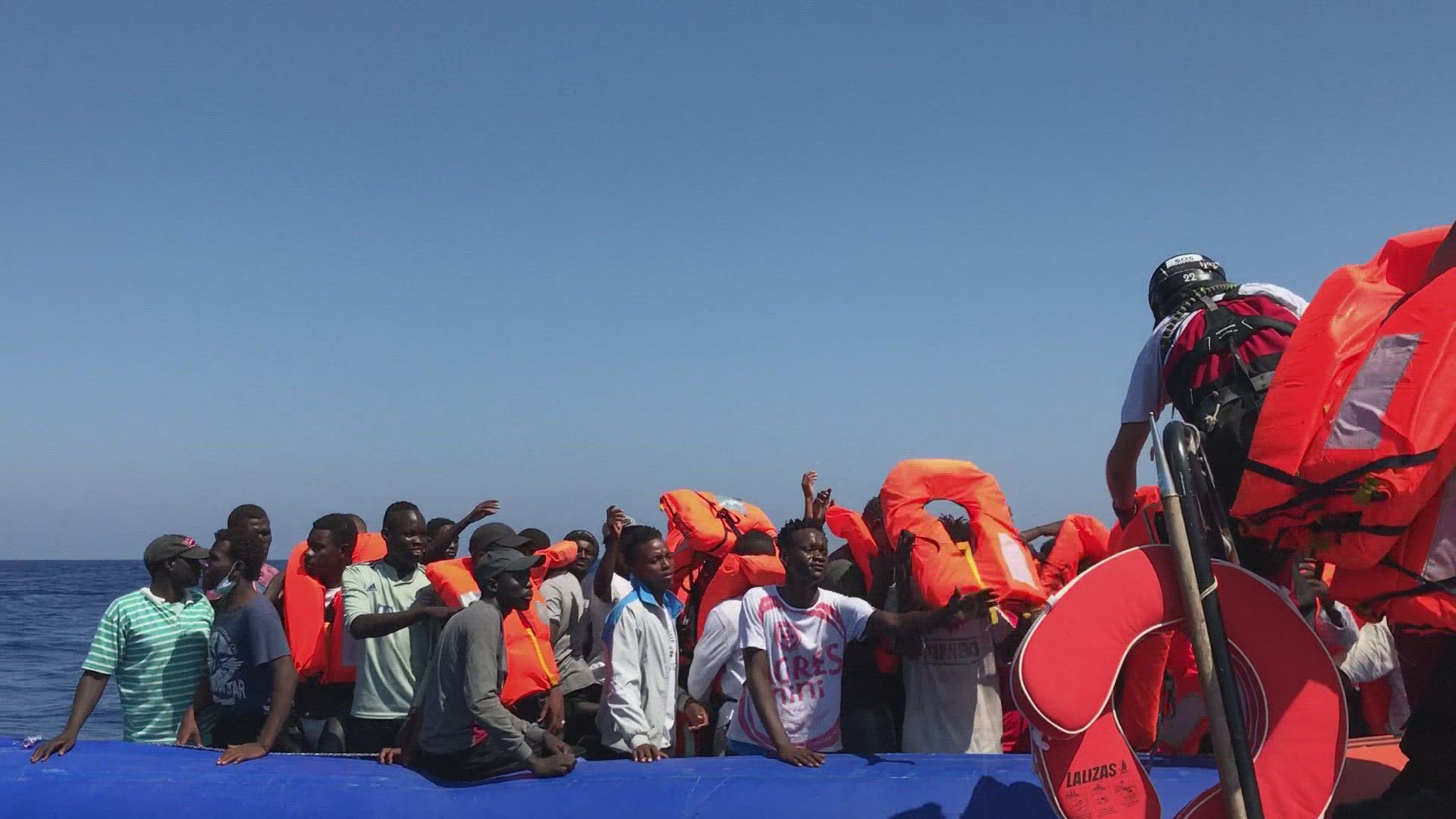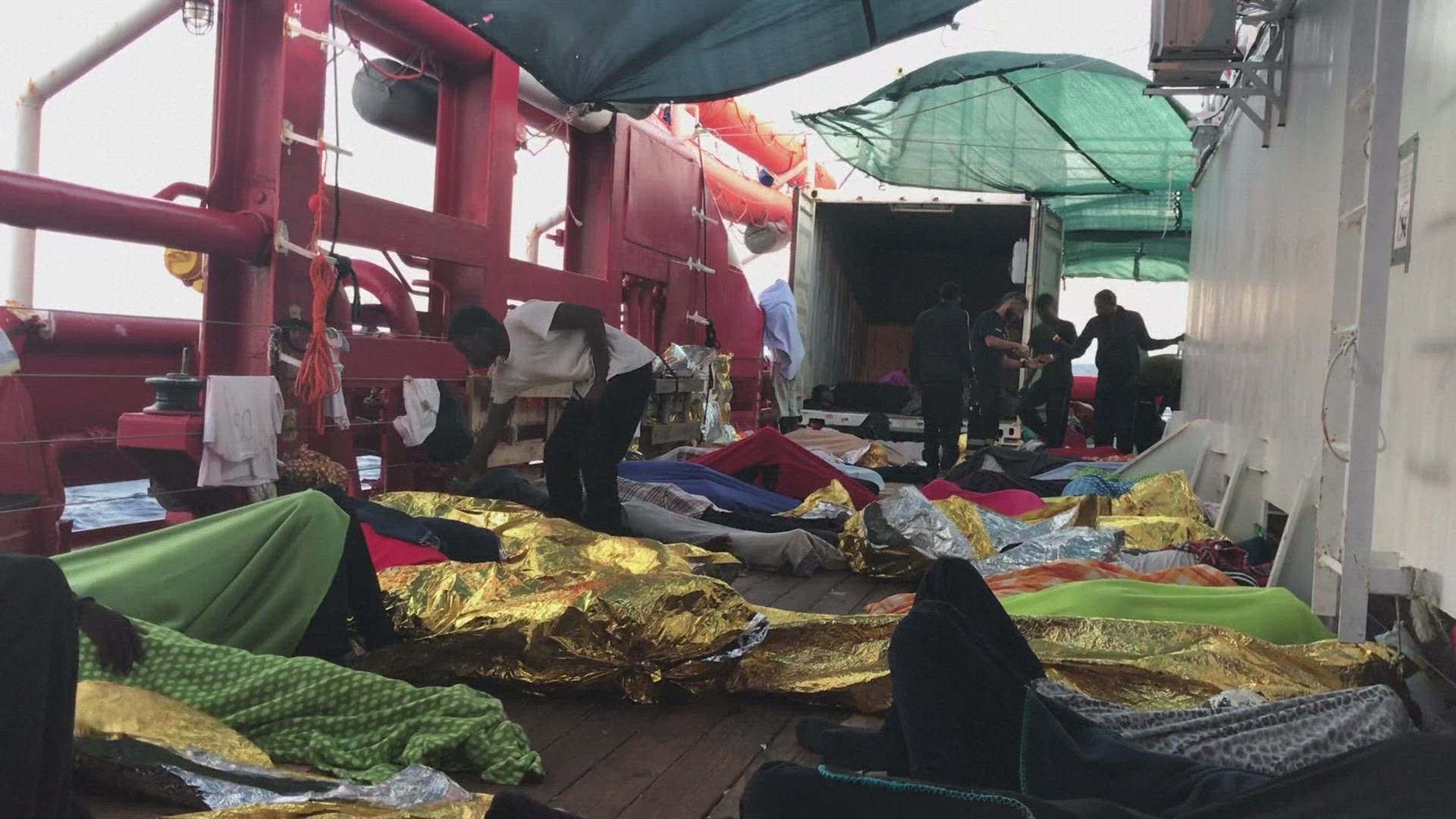 Explosion of joy aboard the Ocean Viking Applause, explosion of joy, songs and hugs break out on the deck of the Ocean Viking ship as six EU countries agreed to take in the 356 migrants stranded on the rescue ship in the Mediterranean after 14 days at sea. IMAGES