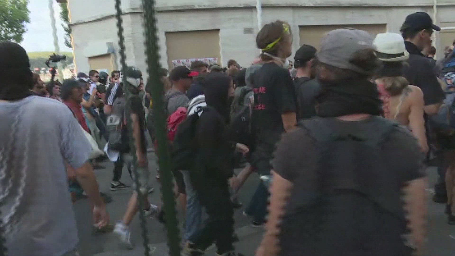 Anti-G7 protesters showcase stolen Macron portraits Hundreds of anti-G7 protesters in Bayonne brandish portraits of President Macron stolen from city halls across France over the past few months. IMAGES.