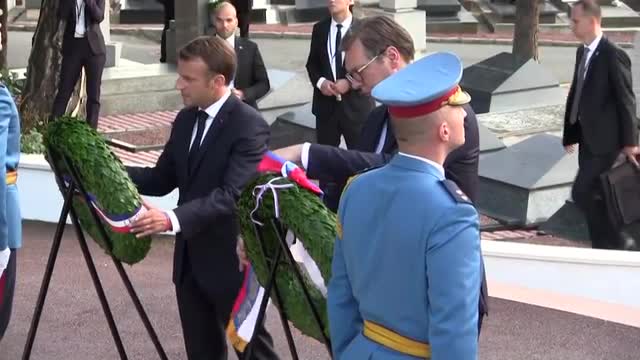 Macron and Vucic review troops on Serbia visit French president Emmanuel Macron is welcomed by his Serbian counterpart Aleksandar Vucic in Belgrade. IMAGES