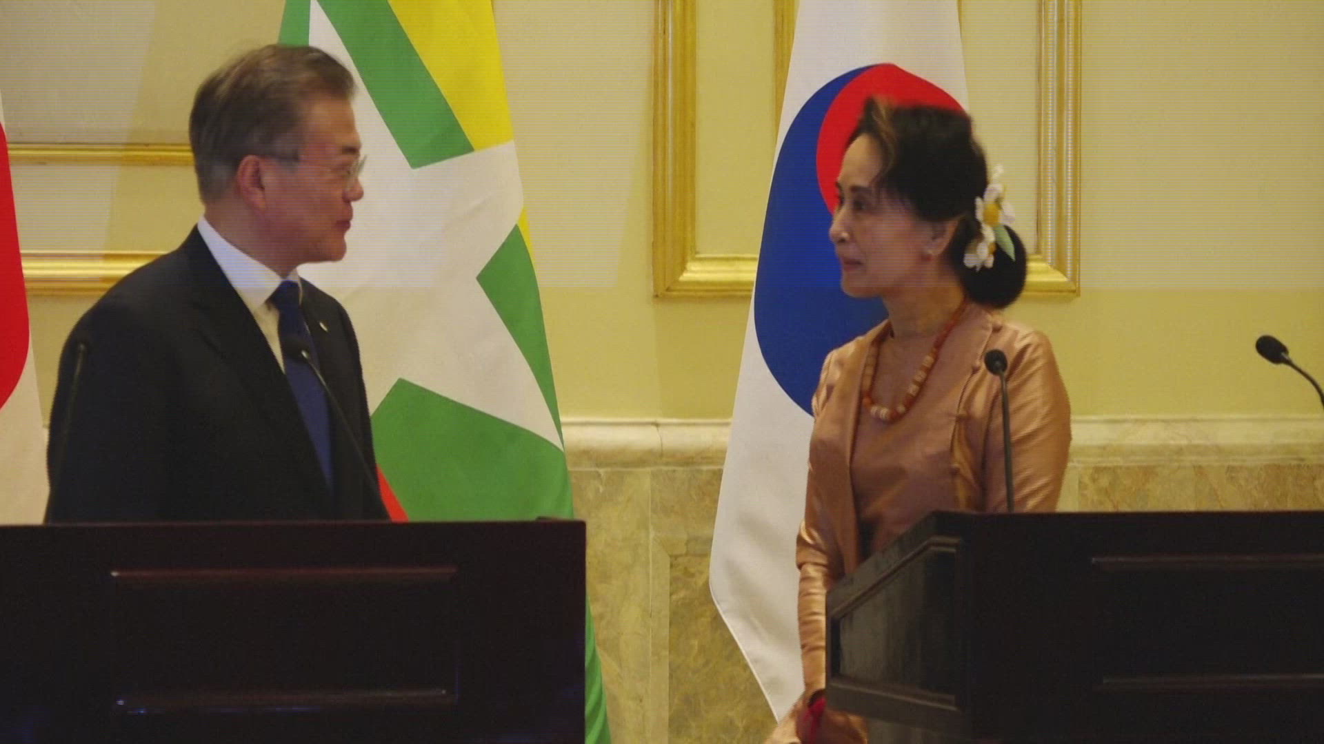 South Korean president visits Shwedagon Pagoda in Myanmar South Korean President Moon Jae-in and South Korean first lady Kim Jung-sook visit the Shwedagon Pagoda in Yangon on the second day of their trip to Myanmar. IMAGES