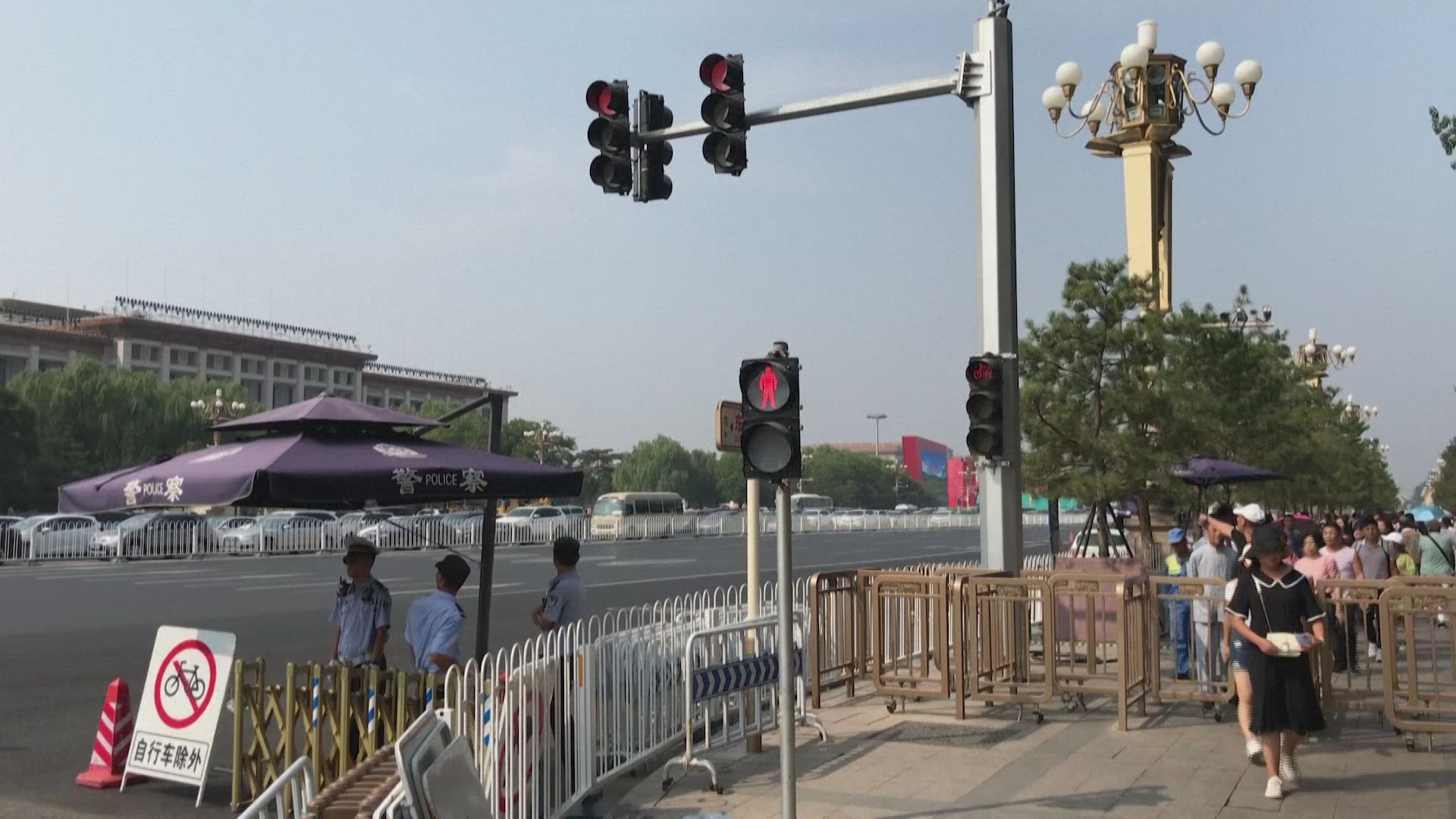 Beijing tightens security ahead of 70th anniversary Beijing is tightening security weeks ahead of a massive military parade to mark Communist China's 70th anniversary. Several large screens are installed at Tiananmen Square, where tanks and other army hardware will be shown off. Security was already tighter than usual to enter Beijing's massive square as guards sifted through every bag in the long line of local tourists heading for a visit on Thursday. IMAGES
