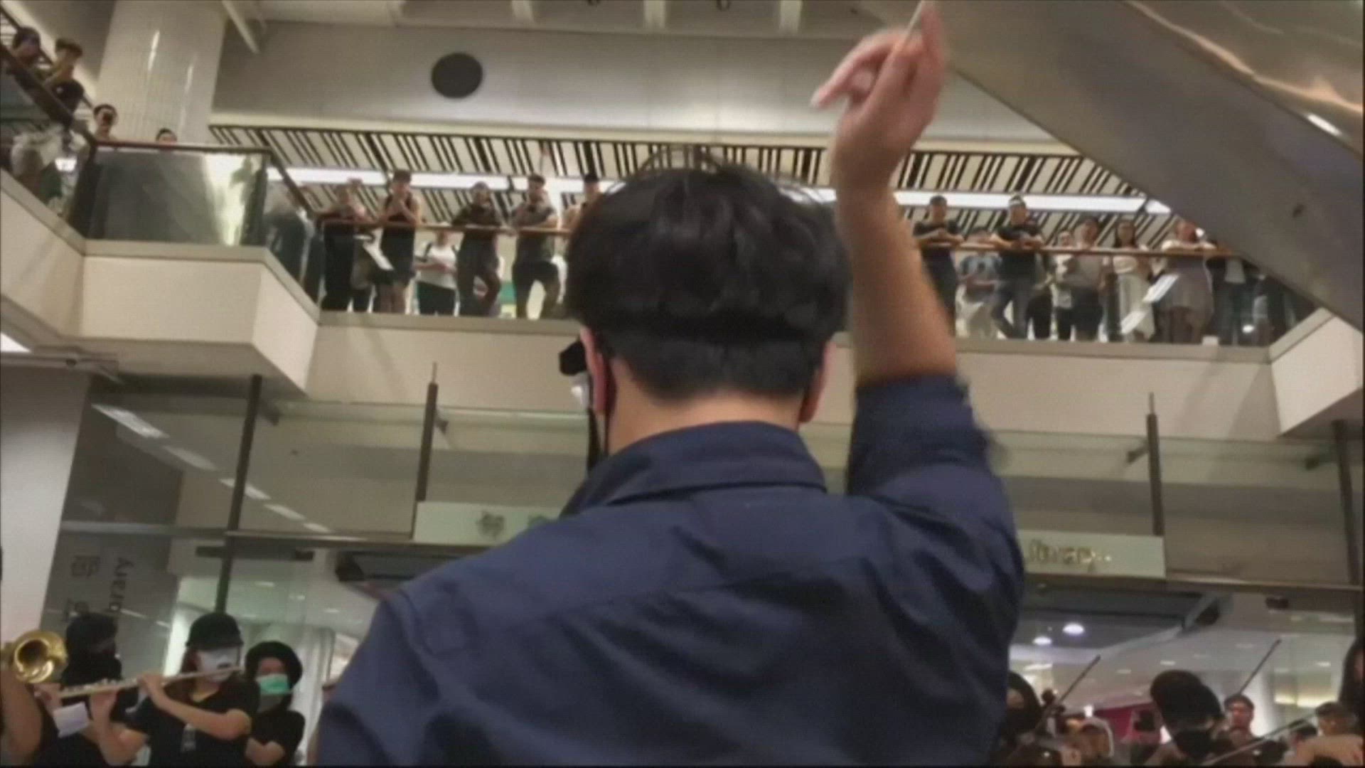 Hong Kongers gather at mall to sing protest anthem People gathered at a mall on Thursday night to sing "Glory to Hong Kong," a defiant protest anthem penned by an anonymous composer. The song has become the unofficial new soundtrack to the city's pro-democracy protests. IMAGES