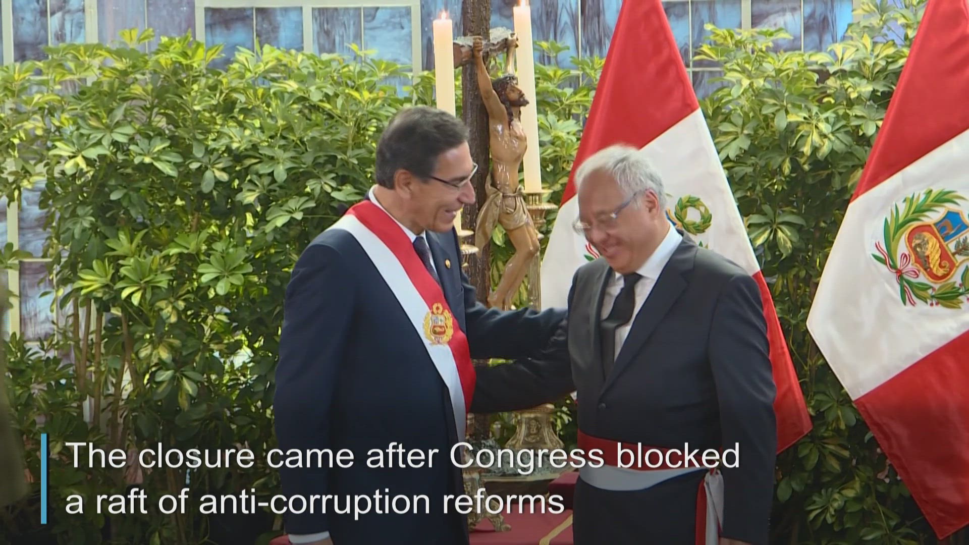 President of Peruvian Congress holds presser The President of the Peruvian Congress Pedro Olaechea holds a press conference a day after President Martin Vizcarra dissolved Congress in a spat over corruption and called elections, prompting a vote by lawmakers to suspend him. IMAGES