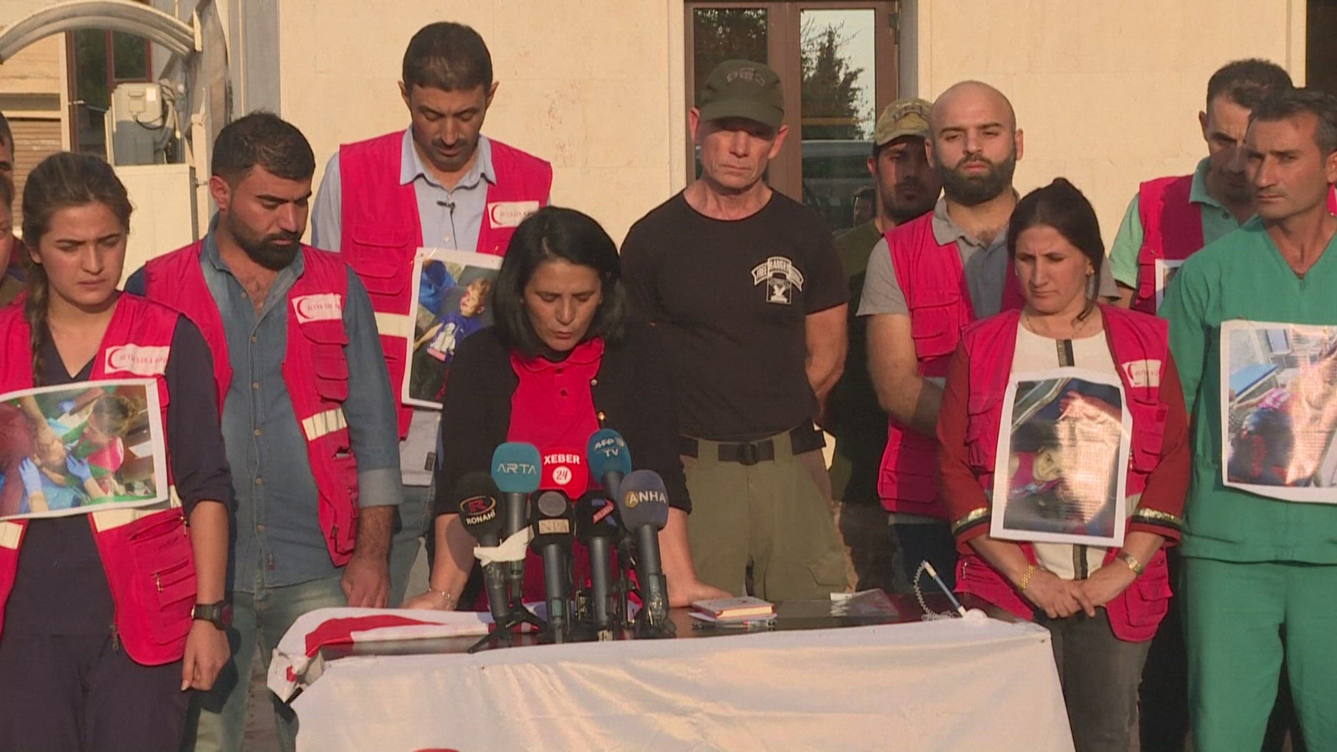 Hong Kong journalists wear masks at a police press conference Journalists wear gas masks and yellow reflective jackets at a police press conference to protest against reported abuse of police power against journalists. Meanwhile, the police say they have arrested 77 people since the prohibition on face-covering regulation came into effect on Saturday.