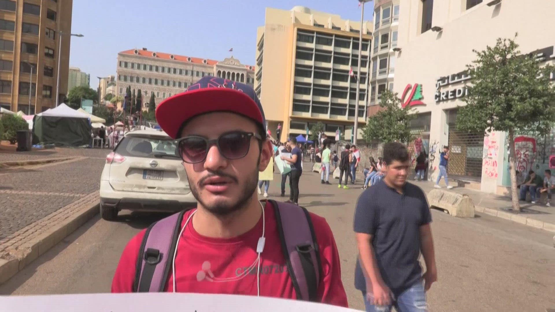 Protesters in streets of Beirut criticize banking policy Dozens of young Lebanese protesters chant slogans that criticise the central bank’s financial policies as they walk through the streets of Beirut, carrying flags. IMAGES