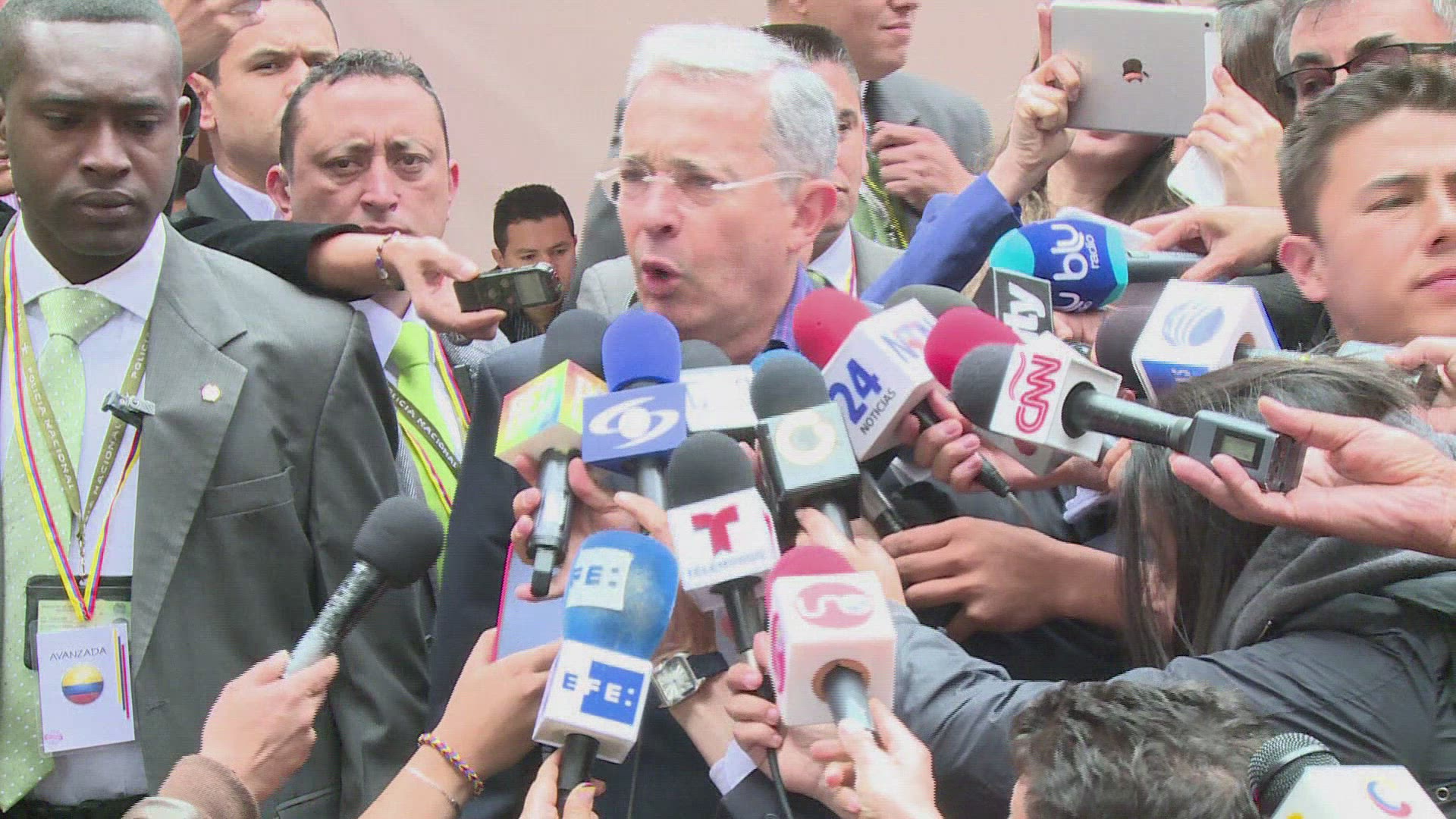 Hundreds march in defence of former Colombian President Uribe Hundreds of people take to the streets in Colombia in defence of former Colombian President Álvaro Uribe, who is facing a judicial investigation over alleged manipulation of witnesses. IMAGES AND SOUNDBITES