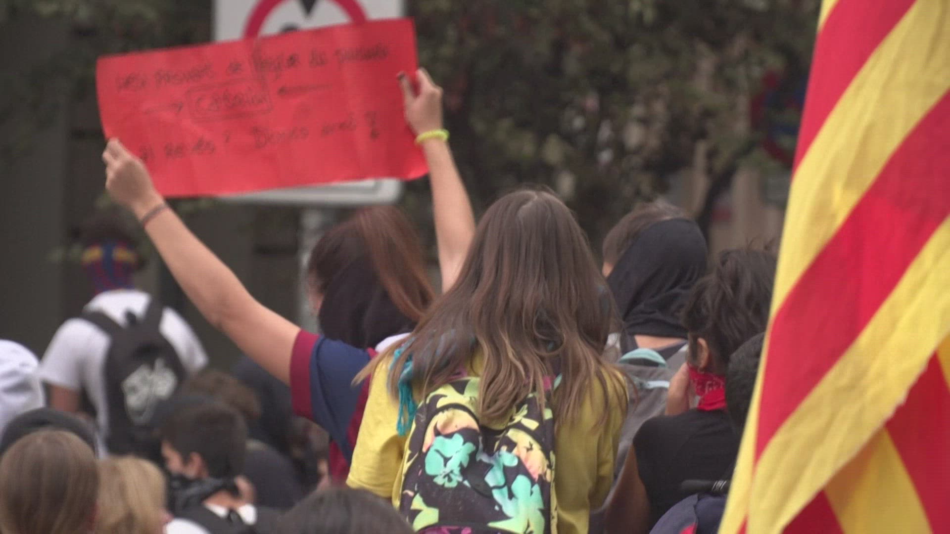 Barcelona protests: Police clash with demonstrators Demonstrators run from police as they fire rubber bullets towards them outside of the National Police Headquaters in Barcelona as more than half a million people rally in Barcelona in protest at Spain's sentencing of nine separatist leaders to long prison terms over an abortive independence bid. IMAGES AND SOUNDBITES