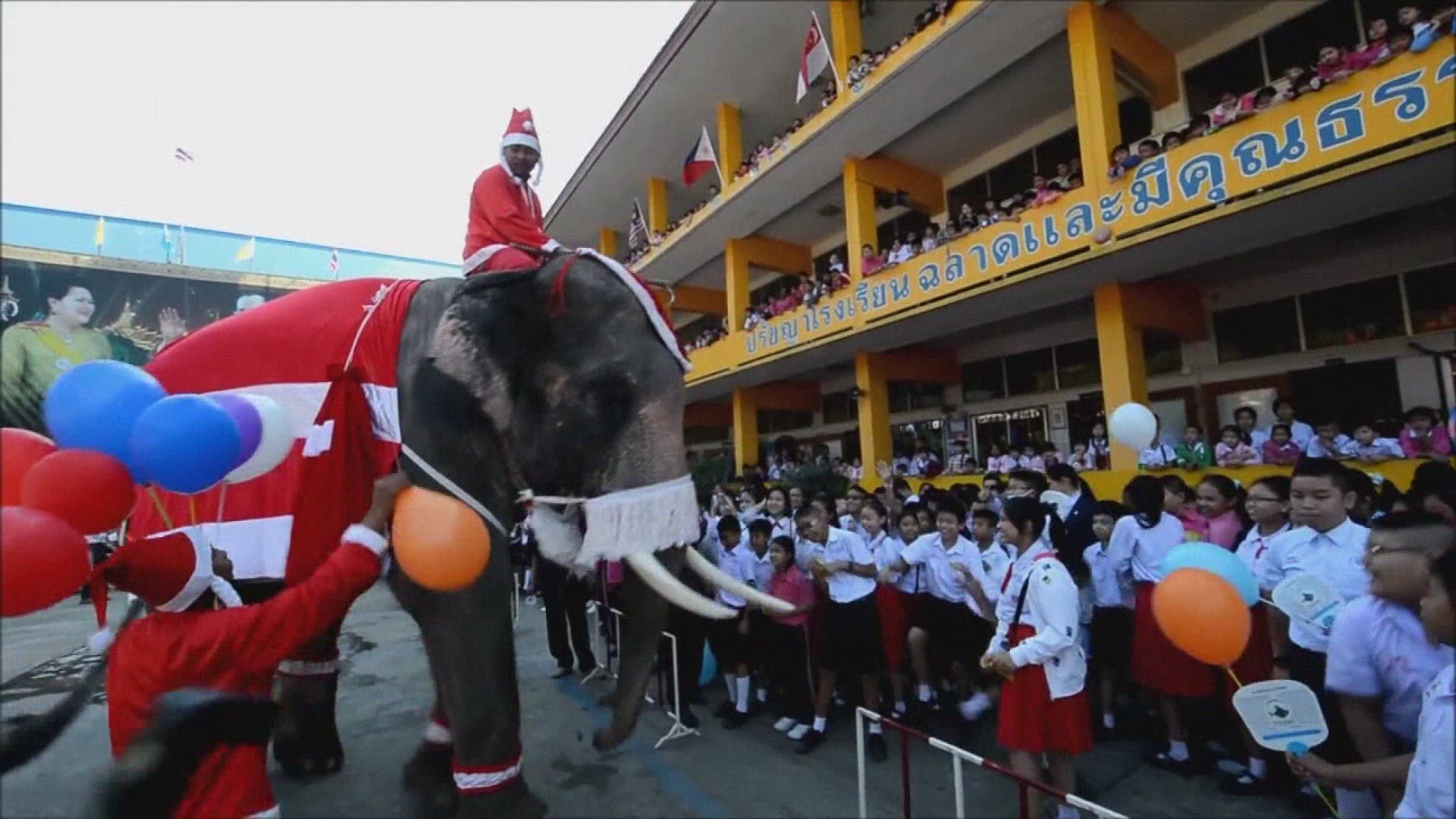 Santa Claus visits Jerusalem on camelback Riding his camel, Santa Claus, a Palestinian with a red suit and a white beard, roams the streets of the Old City of Jerusalem, greeting people and wishing them a Merry Christmas.