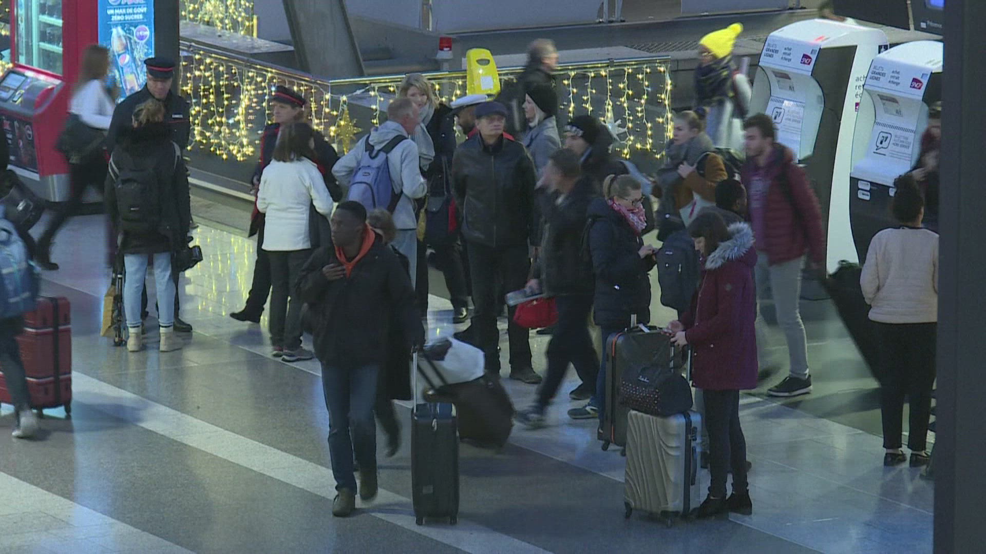 French rail strikes take toll on Paris's Gare du Nord station Stranded passengers wait for trains at Gare du Nord station in Paris, where SNCF traffic remains disrupted on the 25th day of a strike against pension reform, with an average of six out of ten high speed TGV trains running. IMAGES\\n