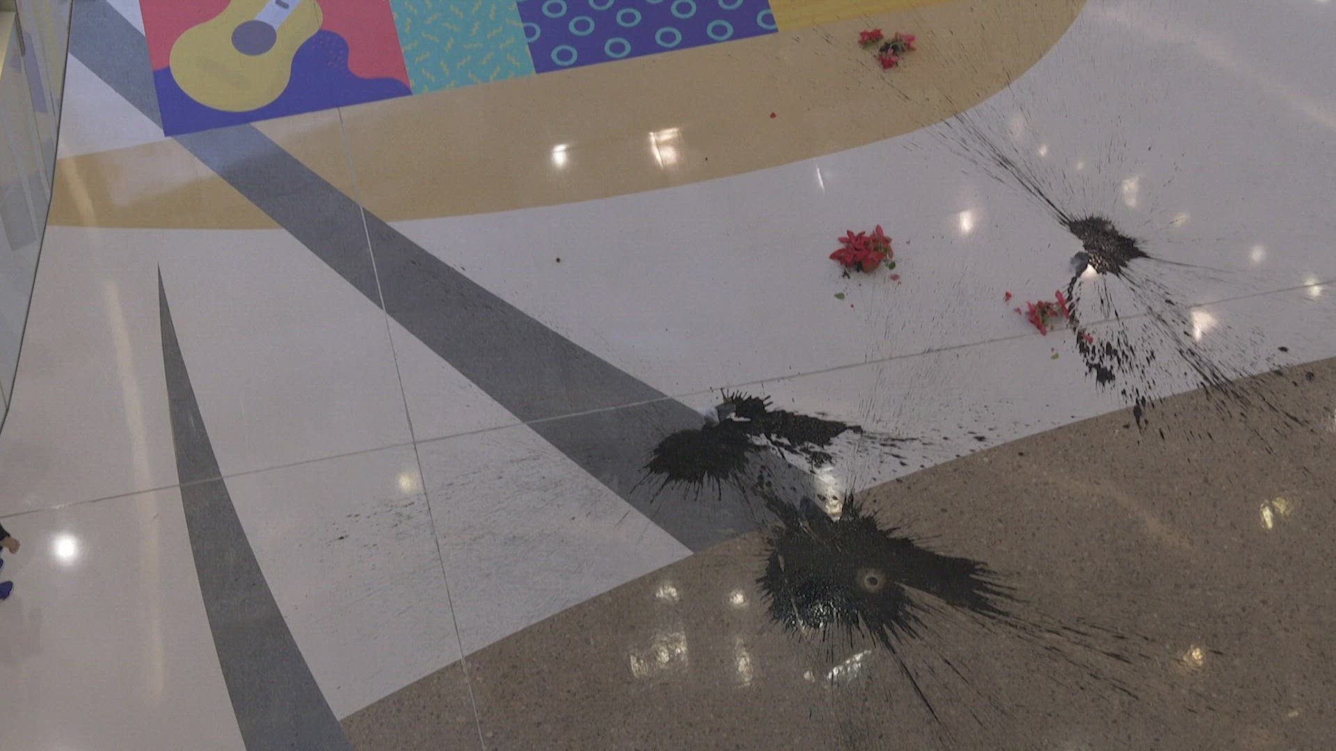 Pacific coffee shop trashed during New Year's Day unrest in Hong Kong Workers clean up a Pacific Coffee shop after it was vandalised during New Year's Day protests in Hong Kong. IMAGES