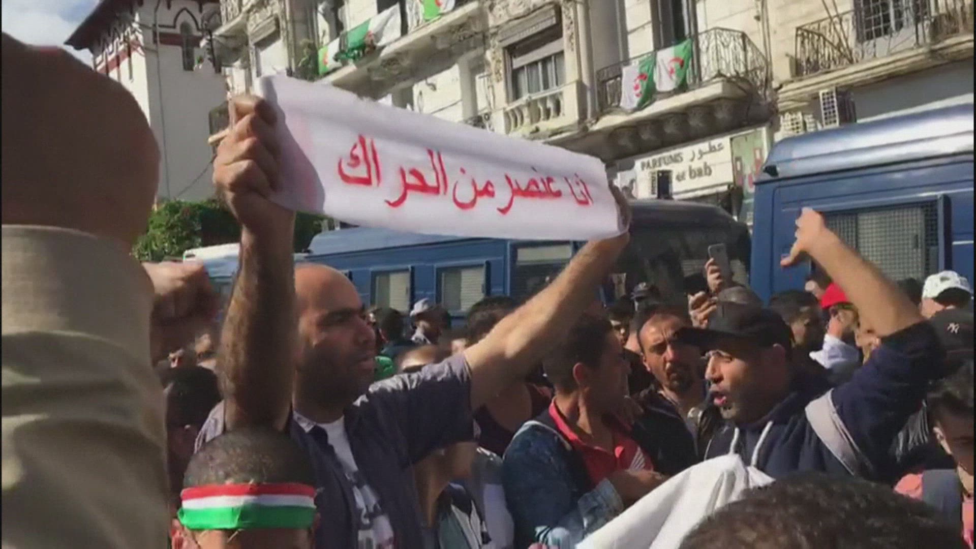 Algerian protesters march and chant slogans despite heavy rain Algerians took to the streets of the capital Friday despite heavy rain just 48 hours before the launch of campaigns for the presidential election scheduled December 12. They demand an overhaul of a whole "system" they say isn't working. IMAGES AND SOUNDBITES