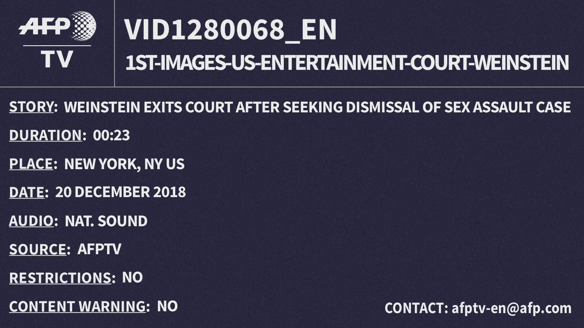 Harvey Weinstein leaves court after bail increased to $2 million Harvey Weinstein leaves a New York City court where a judge increased his bail to $2 million after repeated violations of his ankle monitor system. Weinstein, who faces charges of rape and forcibly performing oral sex on a woman, was originally out on $1 million bail and has had his passport confiscated ahead of his January 6 trial. IMAGES AND SOUNDBITES