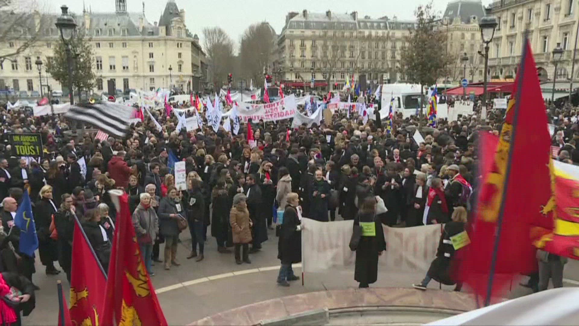 French union holds torch-lit protest in Paris against pension reform (2) France's CGT union holds a torch-lit protest in Paris on the eve of a seventh nationwide day of protests against a pension reform. (completes VID1O897K_EN). \\n\\nFrance's CGT union holds a torch-lit protest on Place de la République in Paris, on the eve of a seventh nationwide day of protests against pension reform. IMAGES AND SOUNDBITES