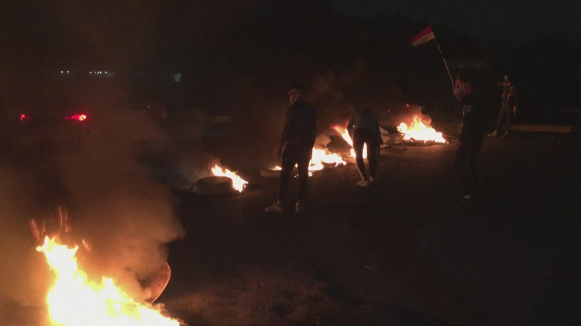 Iraqi protesters in Basra block roads with burning items Iraqi protesters in oil-rich port city of Basra block roads with burning tyres and items during a night demonstration aimed to pressure authorities to implement long-awaited reforms. Anti-government rallies have rocked Iraq since October but had thinned out in recent weeks amid spiralling tensions between Baghdad's key allies Tehran and Washington. IMAGES