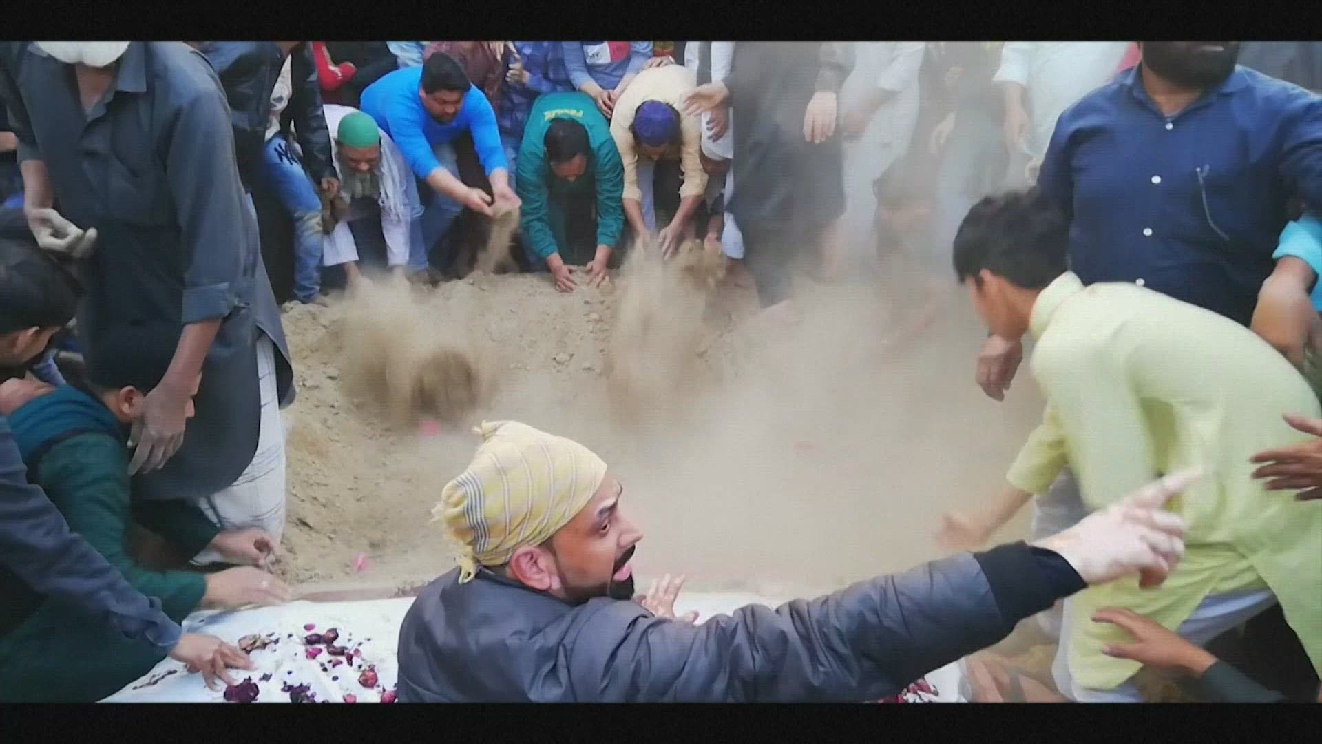 Delhi violence victim buried as riot death toll rises The body of a 30-year-old man is lowered into the ground as family, friends and neighbours mourn him after he was killed amid an outburst of sectarian violence in New Delhi that has claimed at least 27 lives and left more than 200 people injured. He was hit by a stray bullet as he went out to buy groceries, according to his friends. He is survived by his wife and two children.