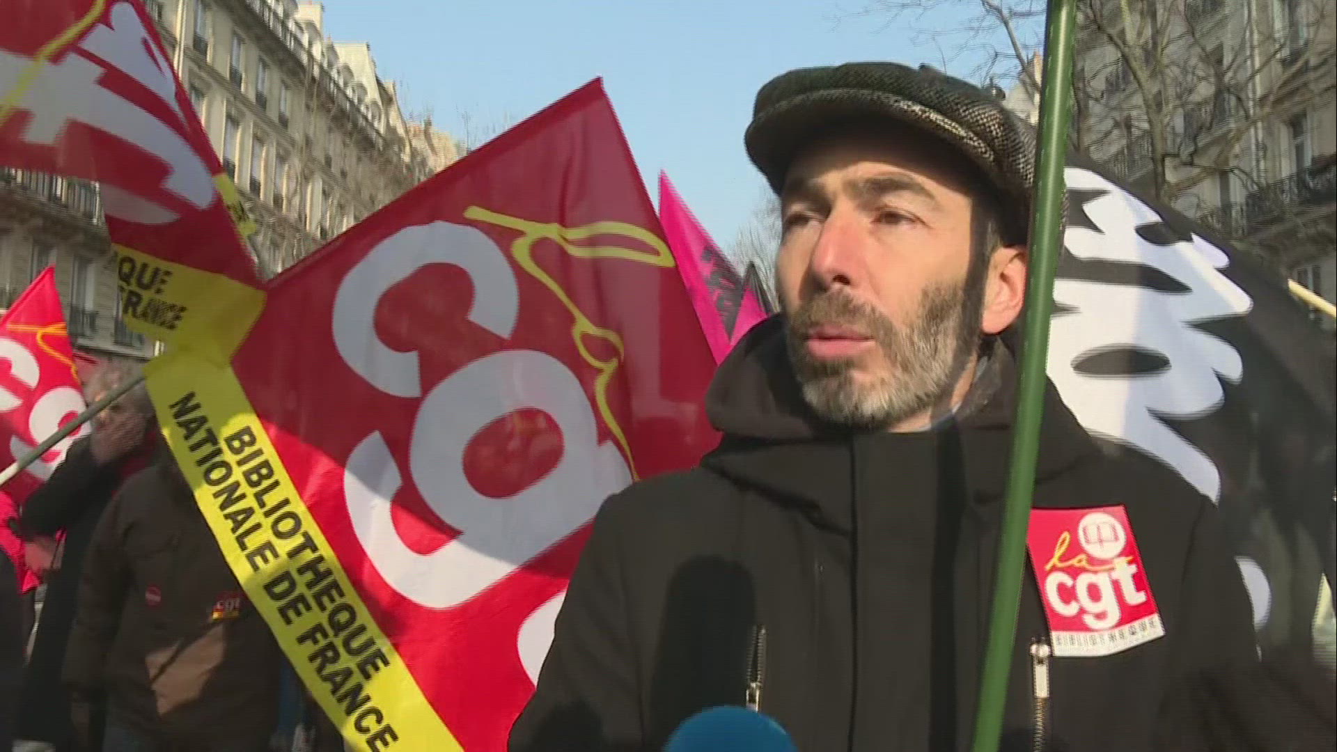 Protesters march in Paris against pension reform (2) Several tens of thousand people demonstrate in Paris against pension reform on the 7th day of nationwide mobilisation.(TO COMPLETE VID1OA3EM_EN) IMAGES