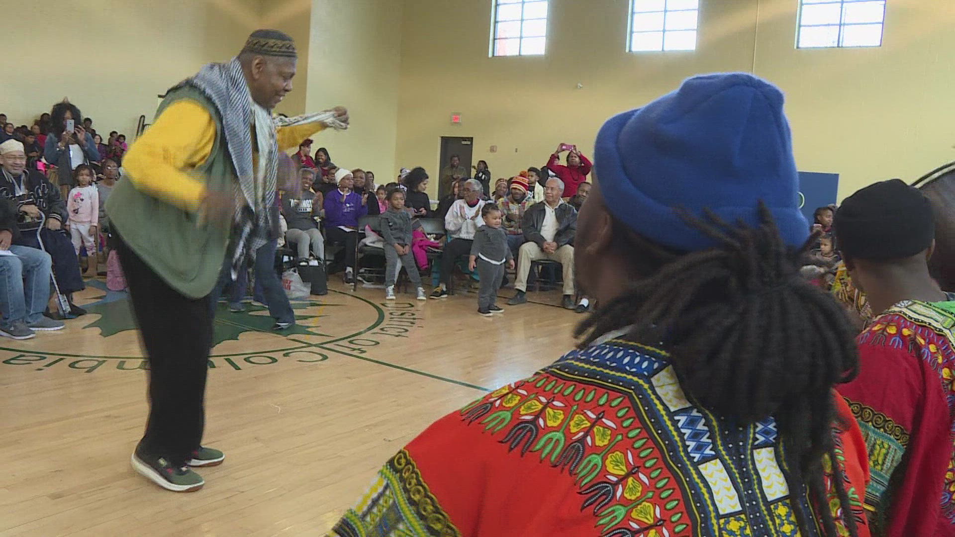 Michelle Obama visits and dances with children in a school in Virginia Beach, VA.