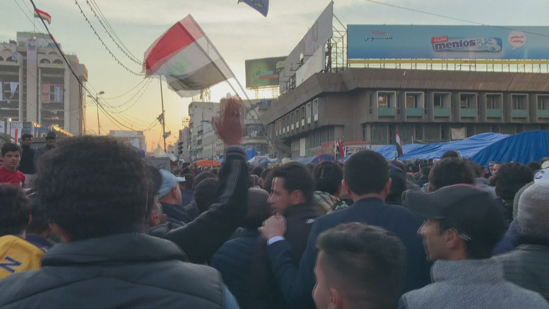 Iraqi students demonstrate in Baghdad's Tahrir square Iraqi students march and chant slogans during an anti-government demonstration in Bagdad's Tahrir square after demonstrators faced off against followers of the influential cleric Moqtada Sadr in protest squares across Iraq, a day after one demonstrator was killed in a clash between the two sides. IMAGES