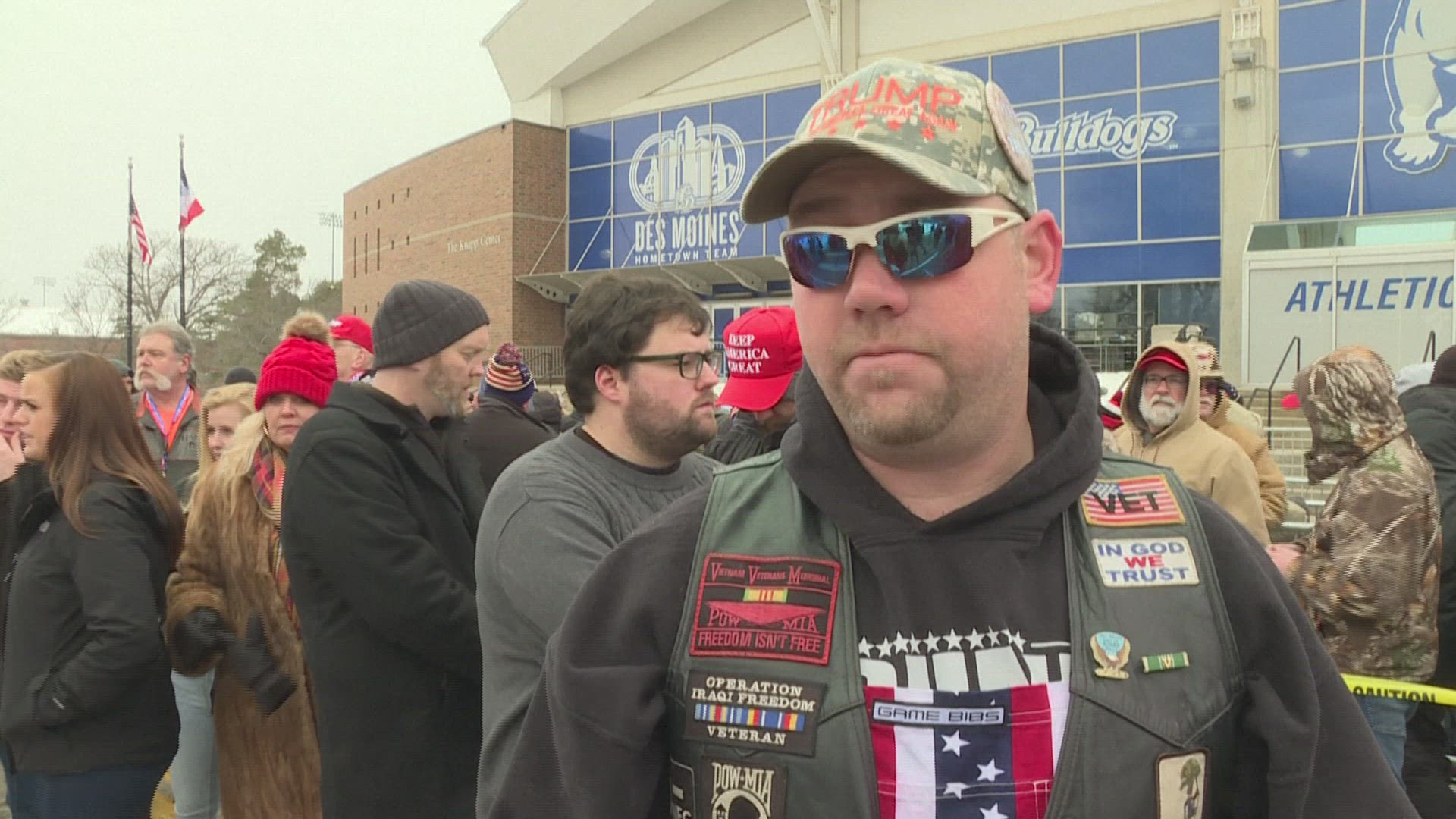 Trump supporters line up outside venue ahead of Iowa rally Supporters of US President Donald Trump line up in the morning for an evening campaign rally in Des Moines, four days before the Iowa caucuses. IMAGES