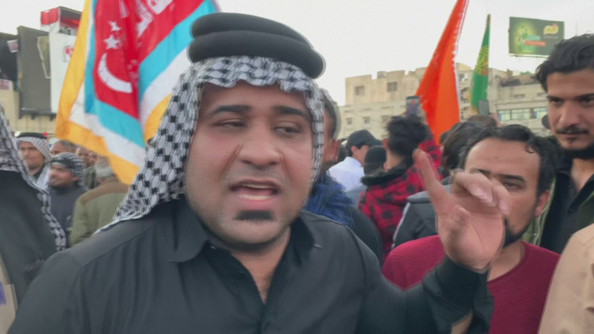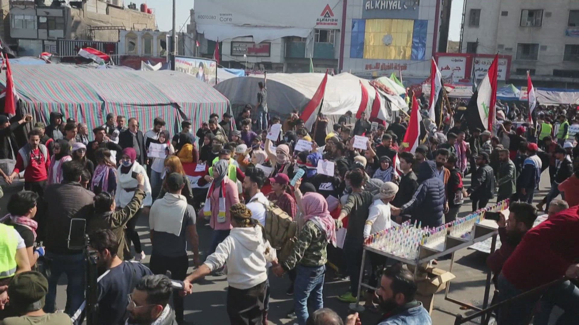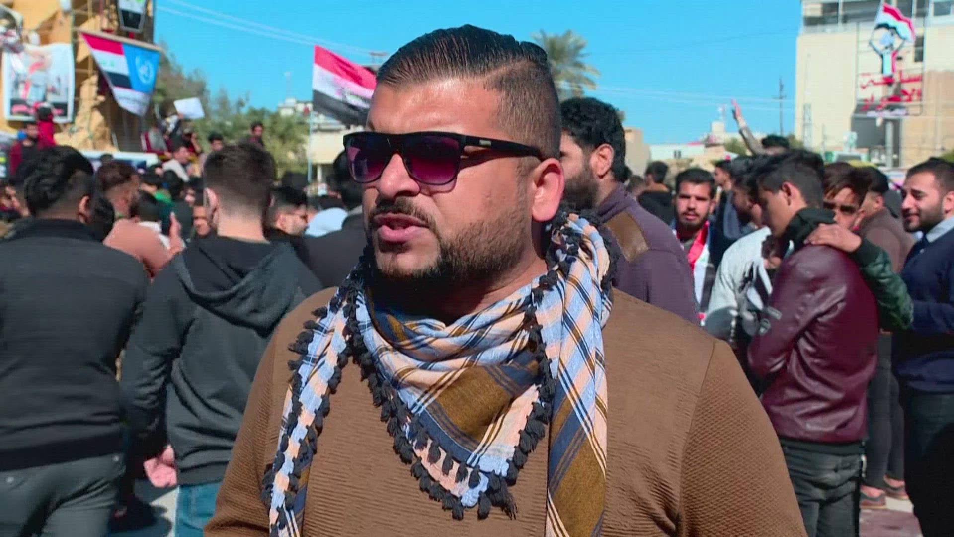 Iraqi students in Karbala march in an anti-government protest Iraqi students march with blue cross marks on their faces in protest of the lack of freedom of speech as they participate in an anti-government demonstration in the holy Shiite Iraqi city of Karbala, south of the capital Baghdad. IMAGES