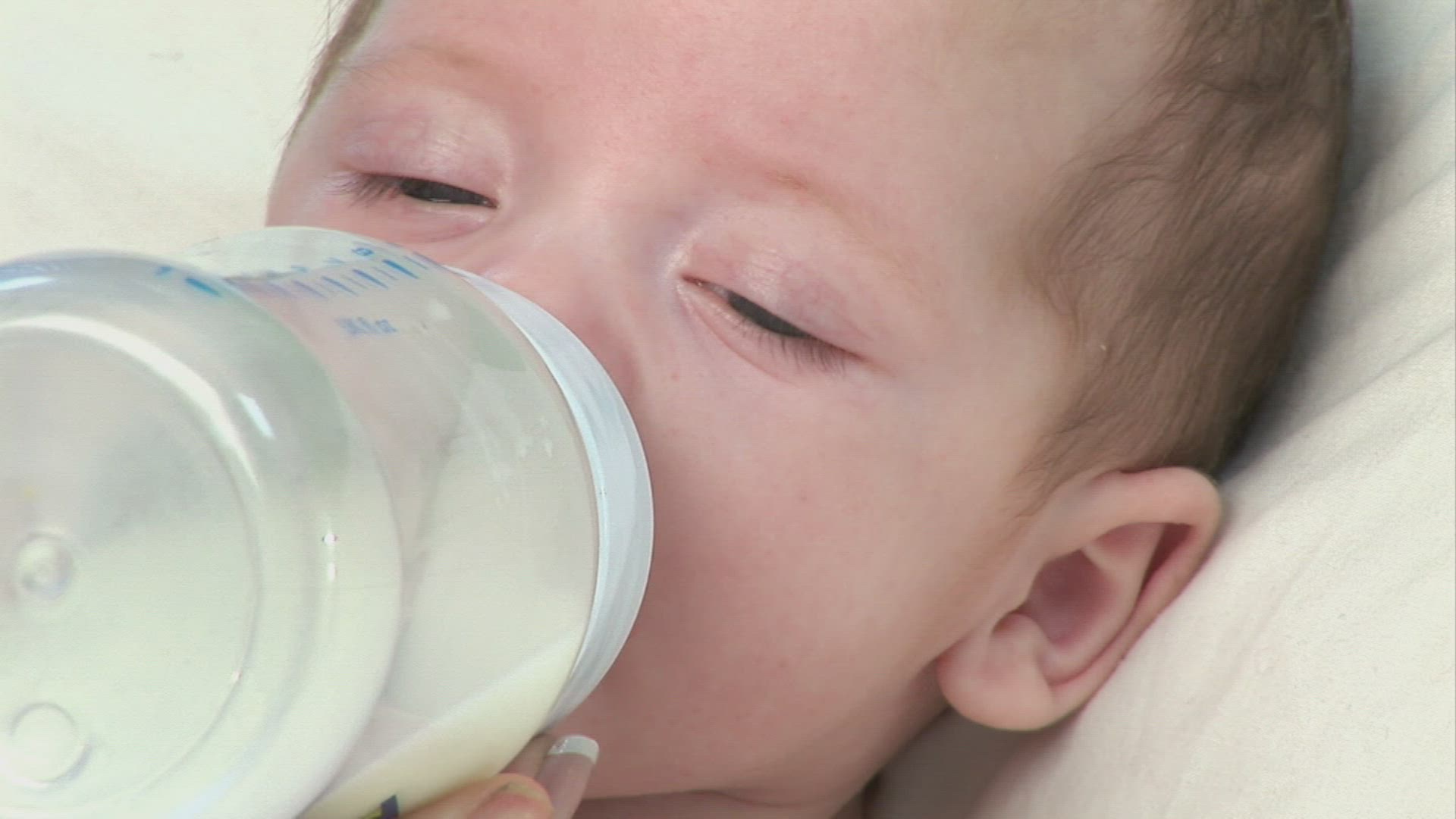 A girl with a feeding bottle; Sweden.