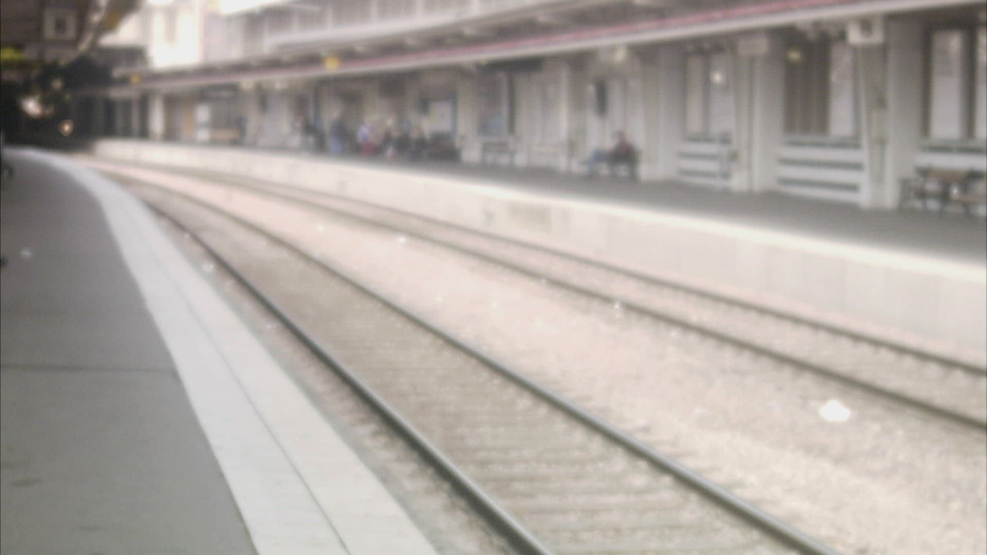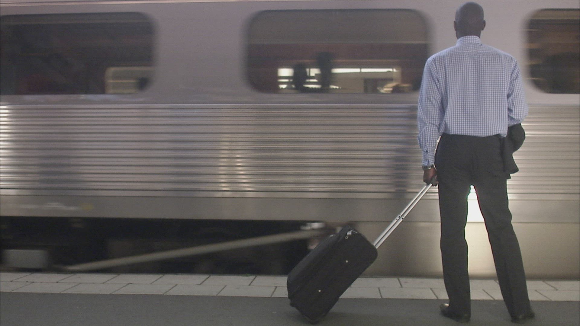 A man and a woman at a train station; Stockholm; Sweden.
