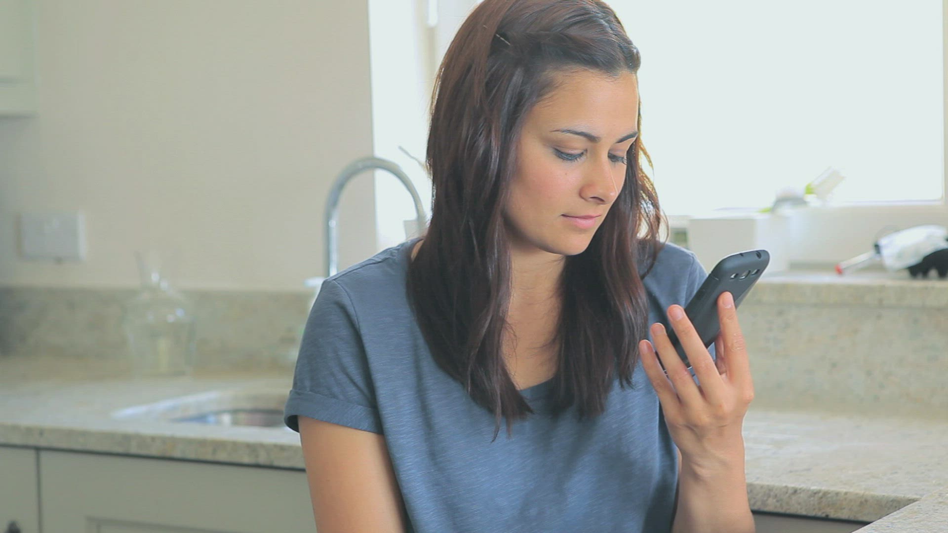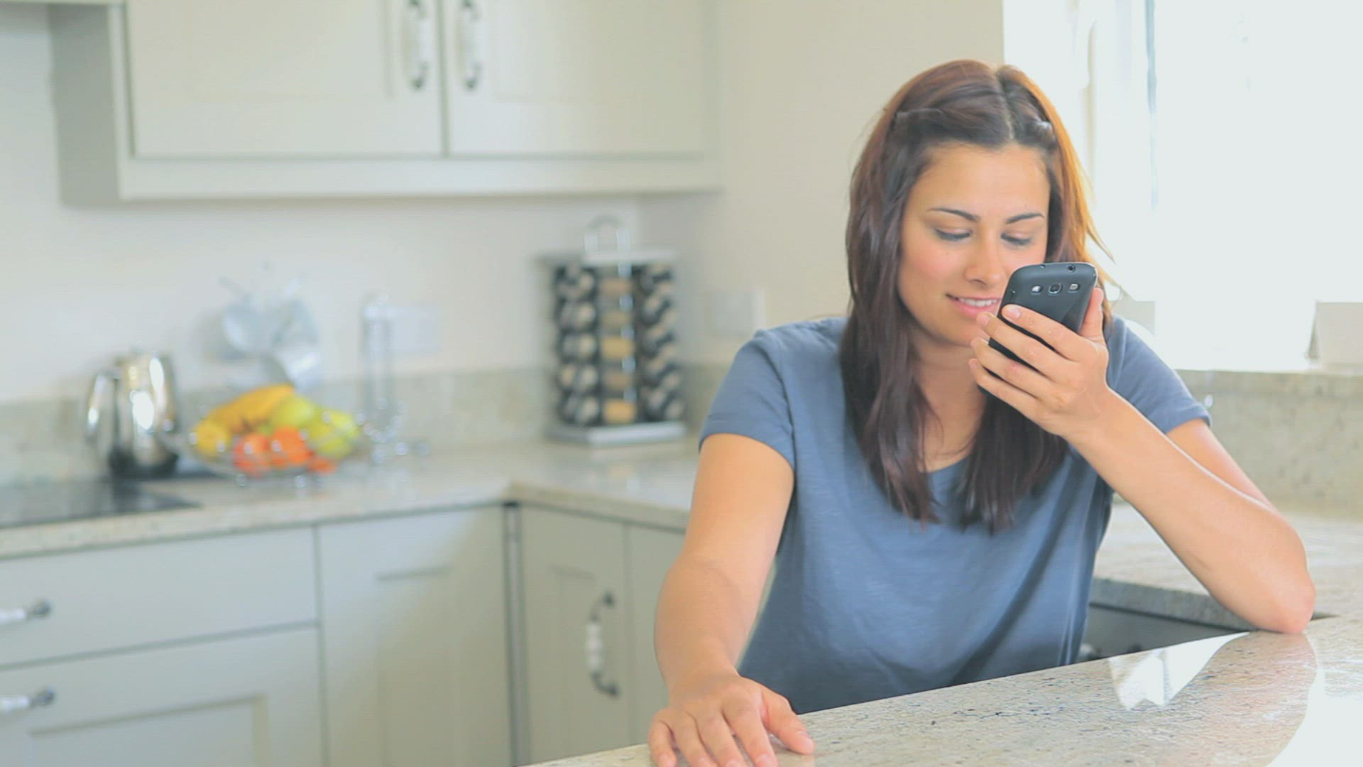 Businesswoman with a mobile-phone and a cup of coffee; Sweden.