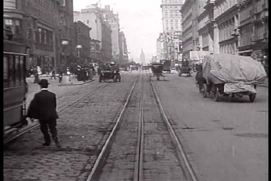 > A trip down Market Street in San Francisco in 1905 just prior to the great earthquake.