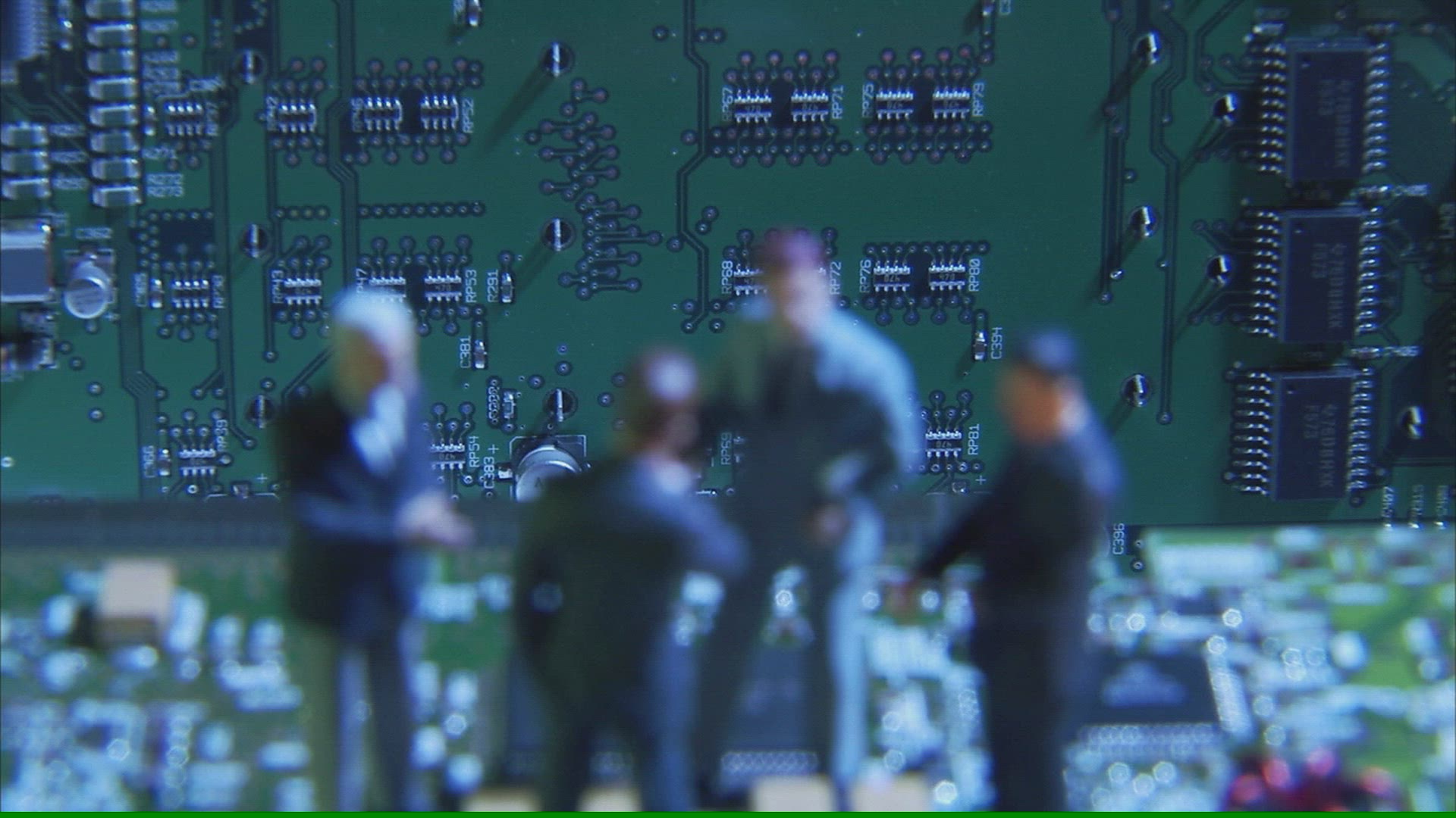 A figurines standing on a printed circuit card; Sweden.