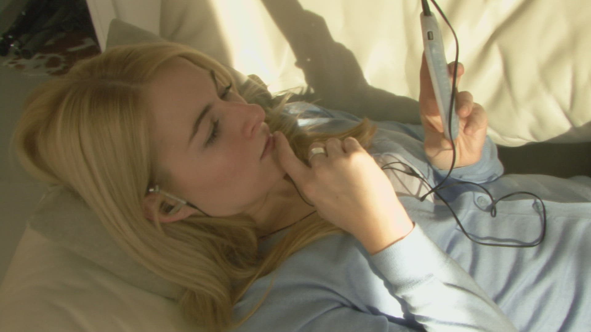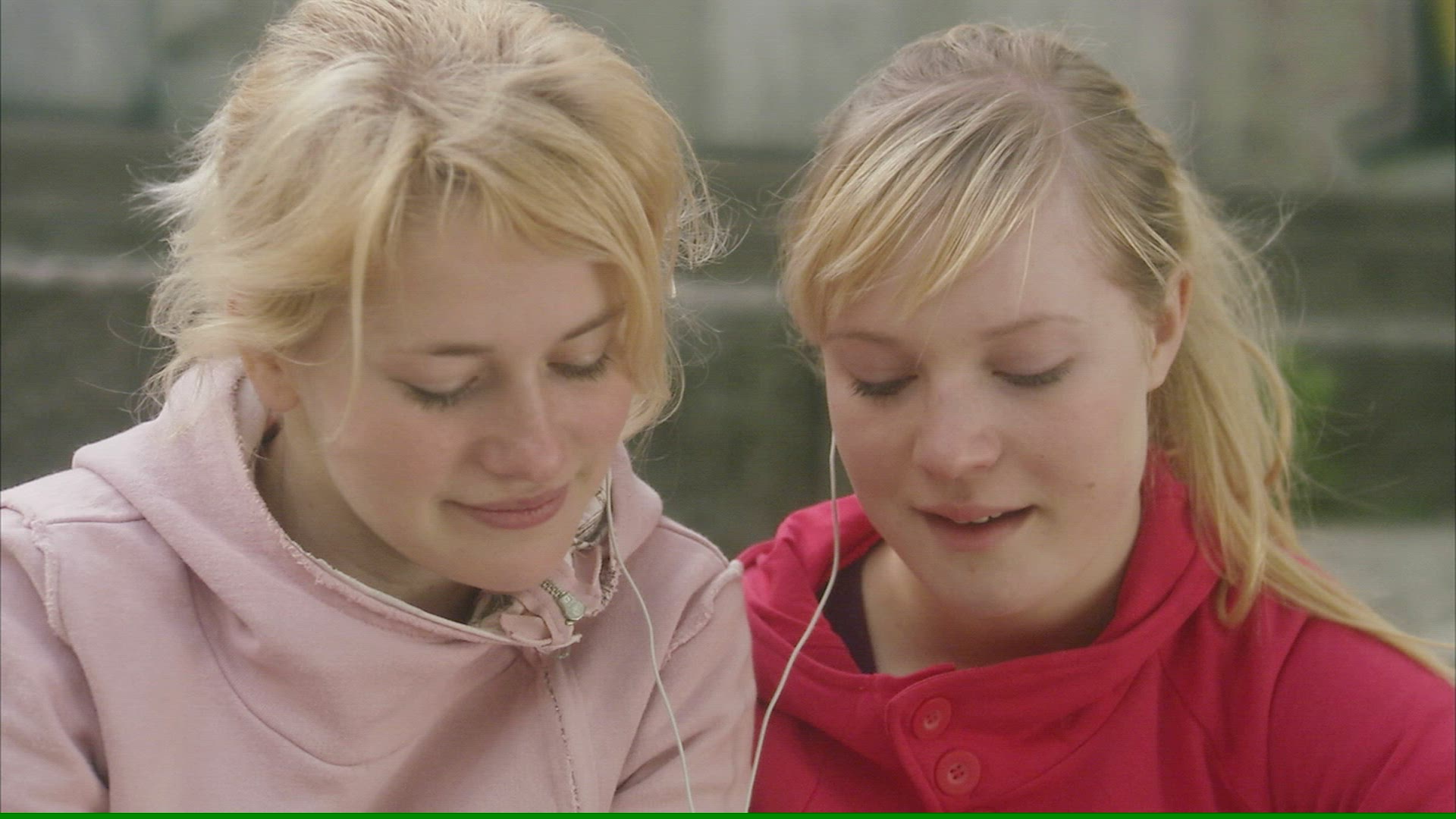 CU Teenage girls listening music / Stockholm; Sweden; Scandinavian Peninsula.