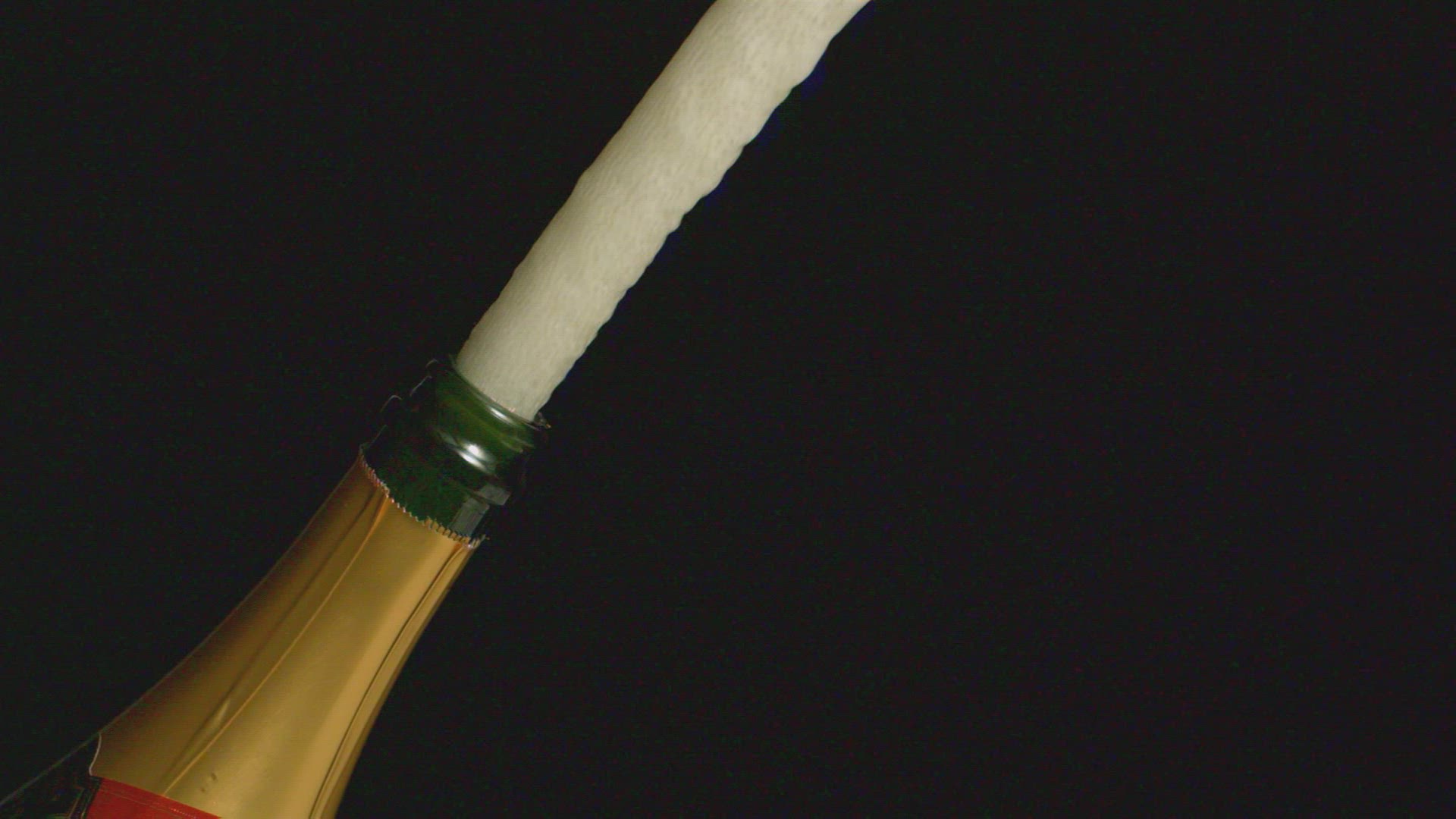 364062 - Foam shooting out of an opened champagne bottle