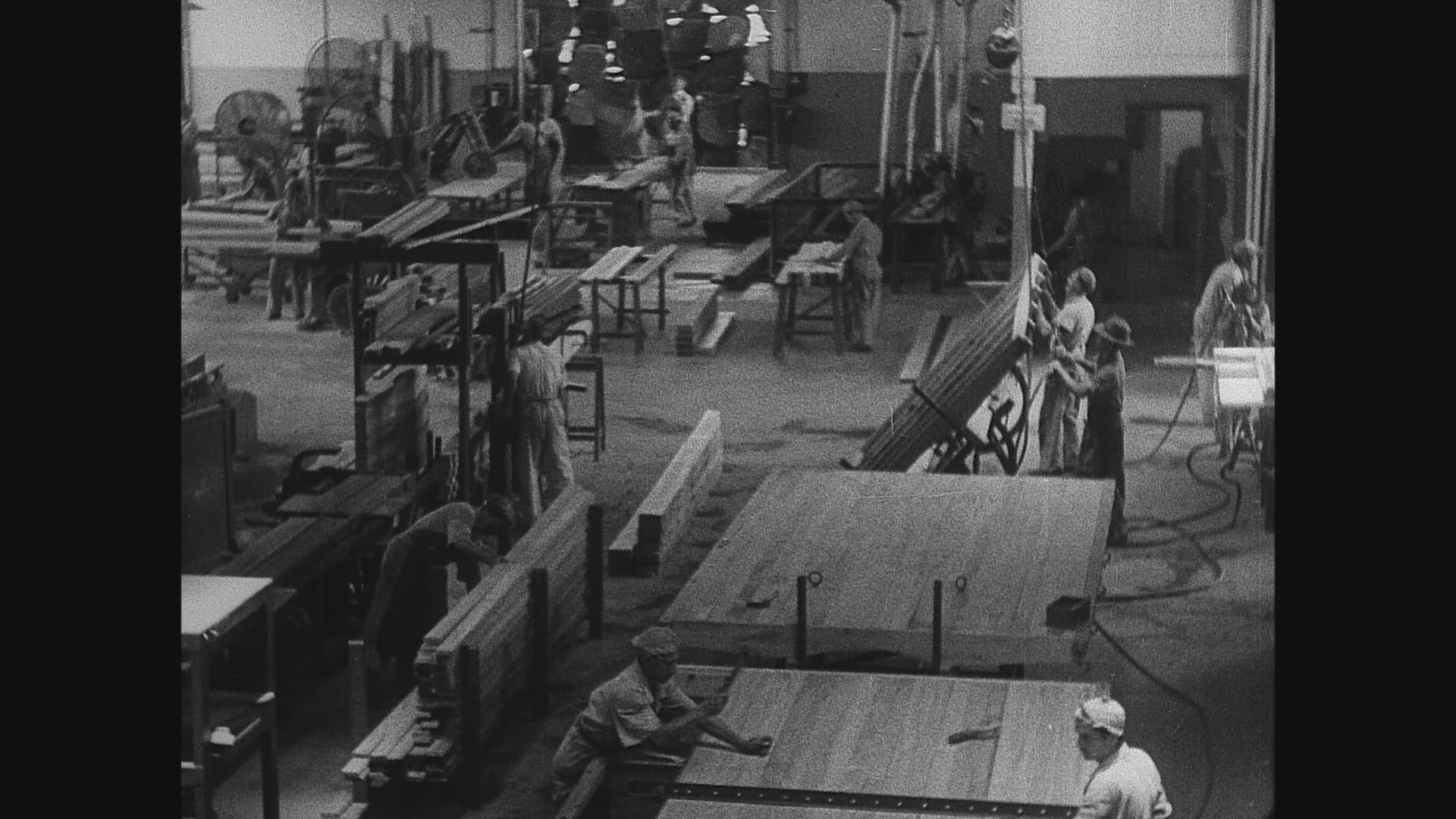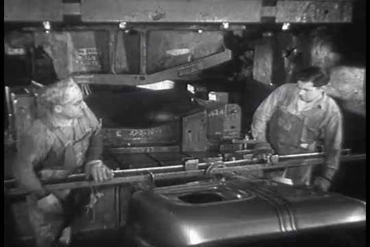 > Workers at the General Motors automobile car factory in Detroit in 1933.