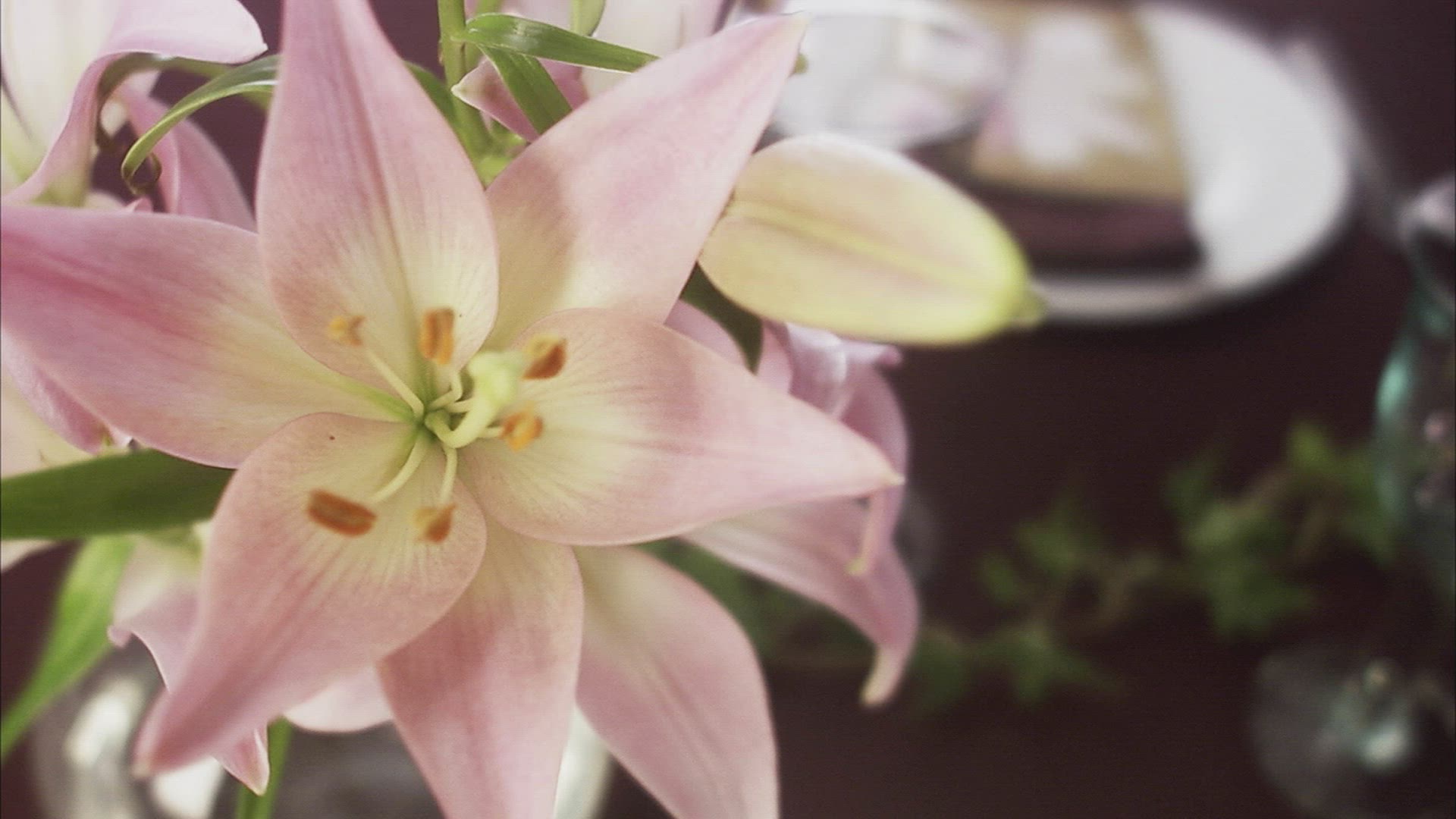 A decorated table wit an engagement ring in a box.