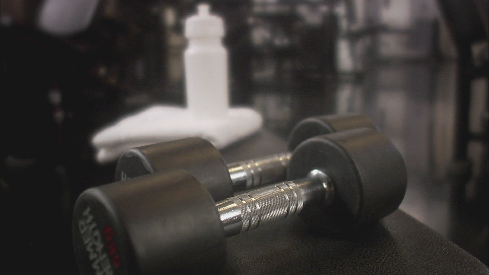 511093 - Closeup Barbell Plates on the Floor, Moves Back