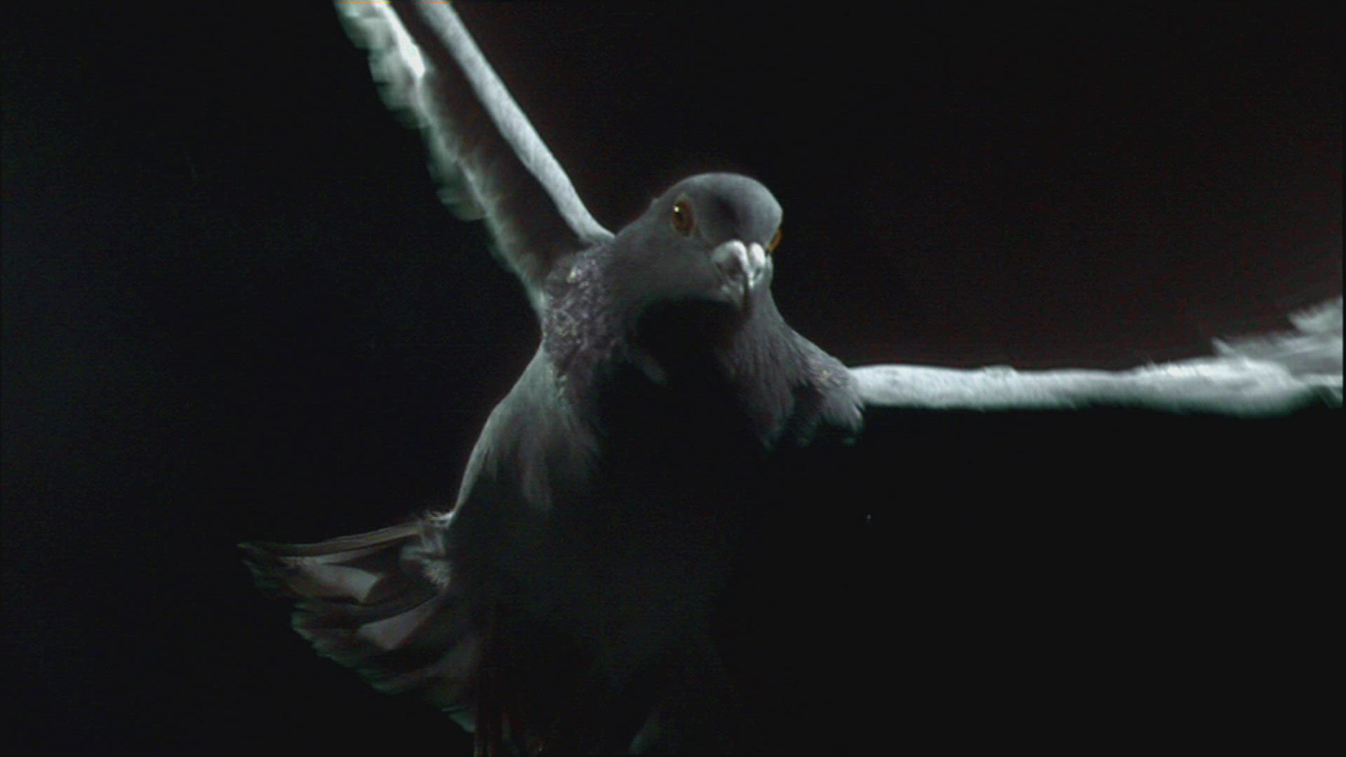 CU SLO MO Pigeon and pedestrian walking on street / Copenhagen; Denmark; Scandinavian Peninsula.