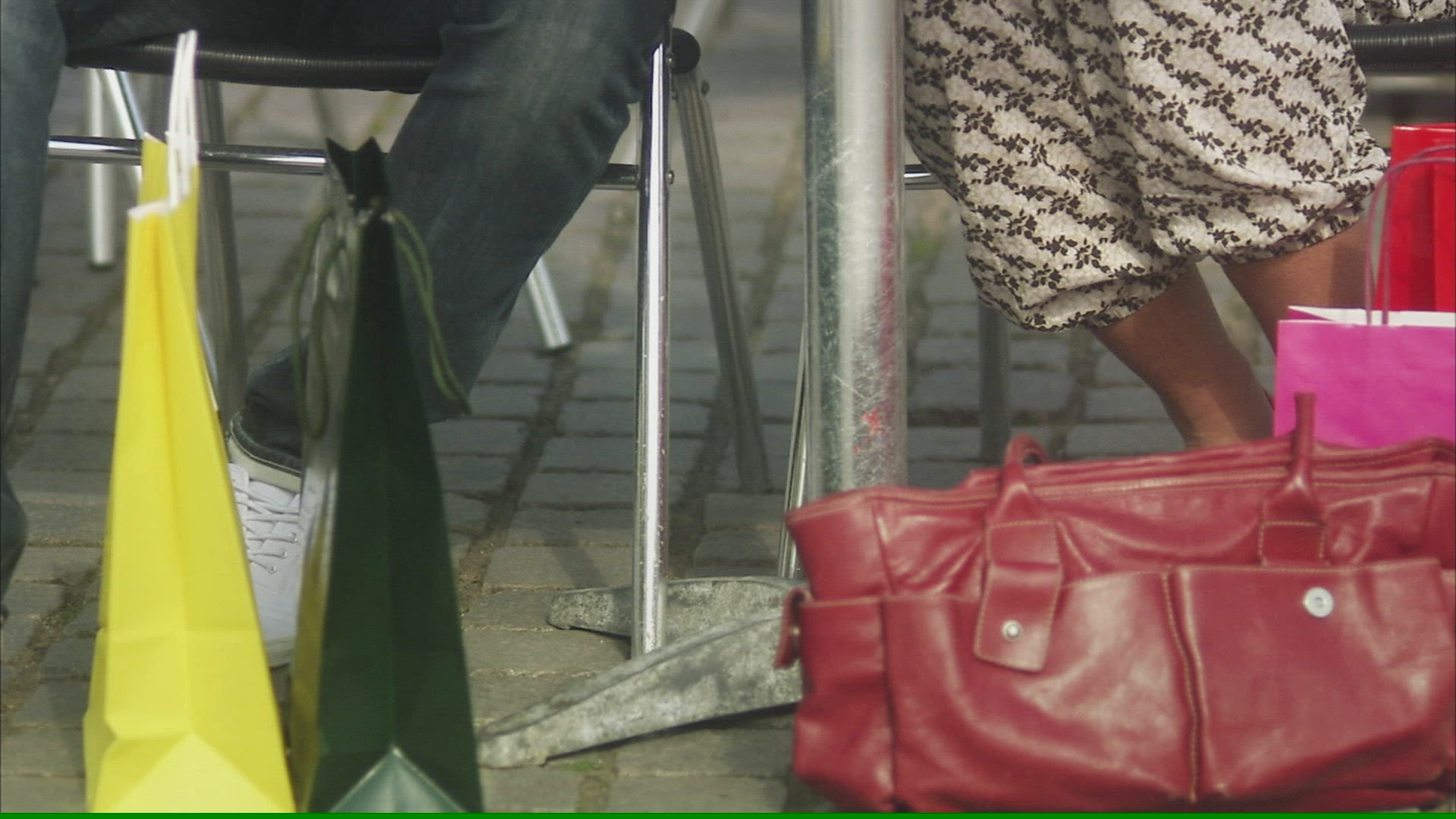 MS POV Couple walking on street / Copenhagen; Denmark; Scandinavian Peninsula.