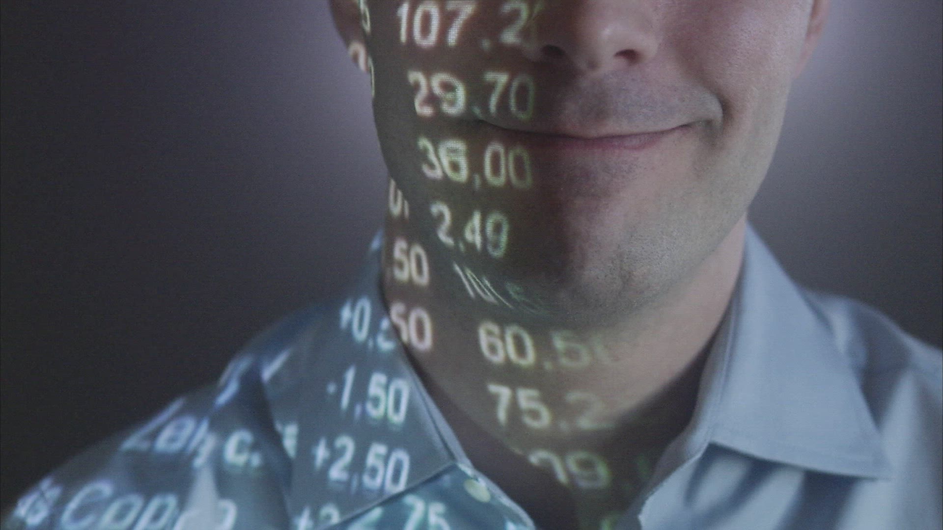 Euro sign projected in a man´s face.